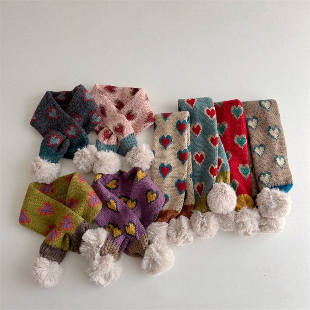 어린이 스카프 귀여운 더블 볼 사랑 패턴 니트 크로스 스카프 한국 스타일 아기 방풍 목 따뜻한 목 소매스토어 가기