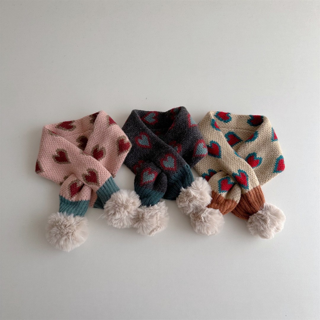 어린이 스카프 귀여운 더블 볼 사랑 패턴 니트 크로스 스카프 한국 스타일 아기 방풍 목 따뜻한 목 소매