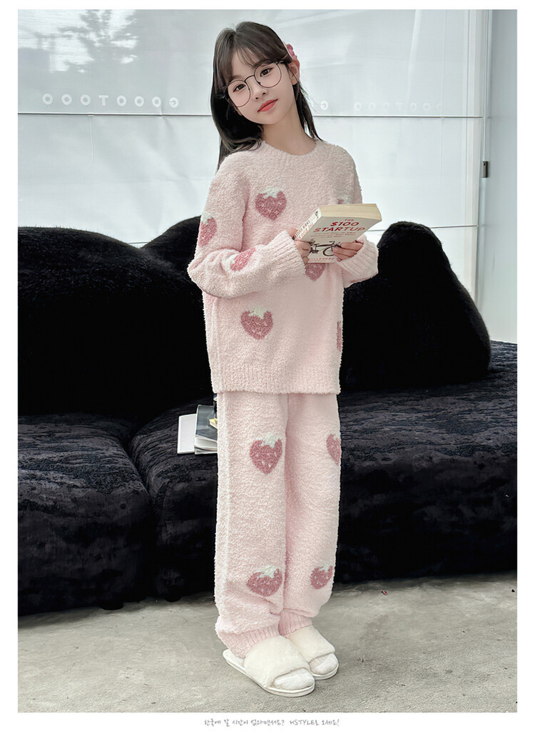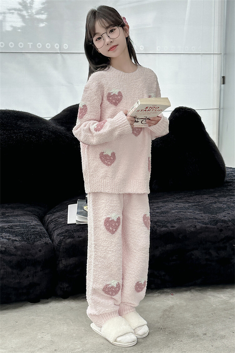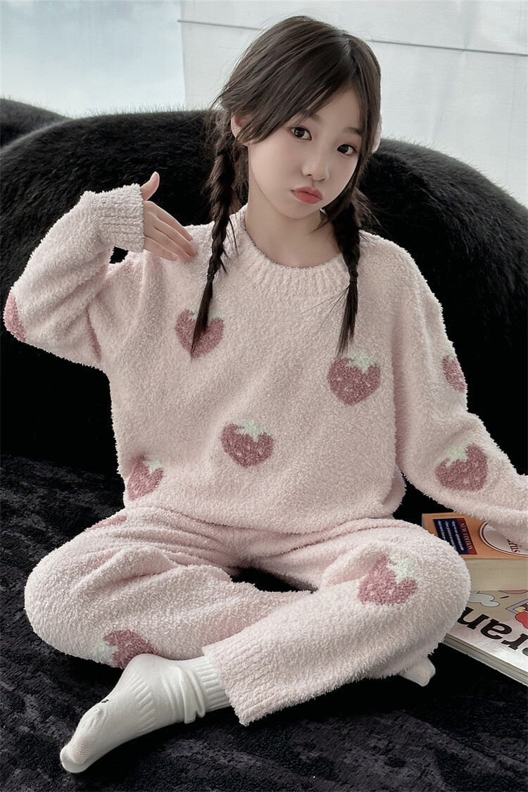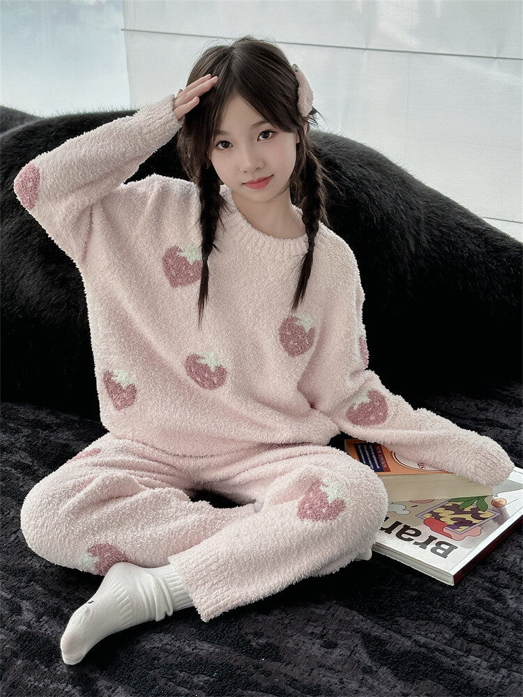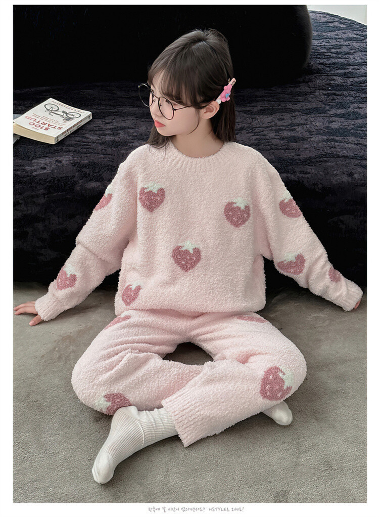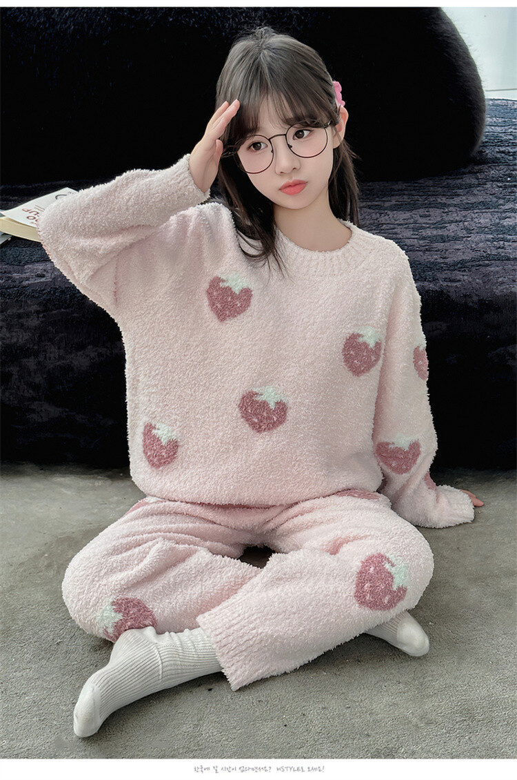 가을과 겨울 옷을 세트 소녀의 달콤한 잠옷 두꺼운 플란넬 따뜻한 중간과 큰 소녀의 공주 홈 옷 외부 옷스토어 가기