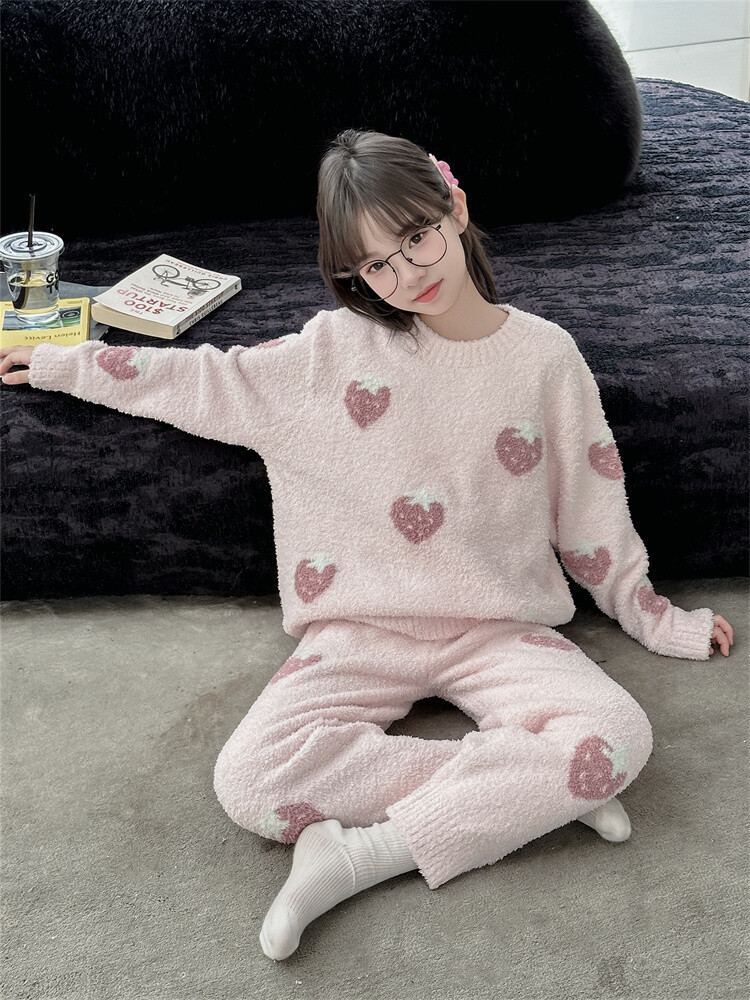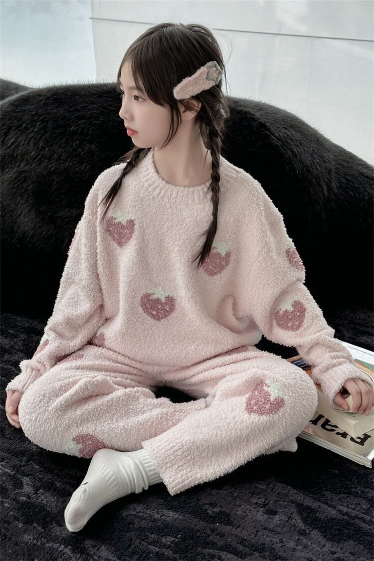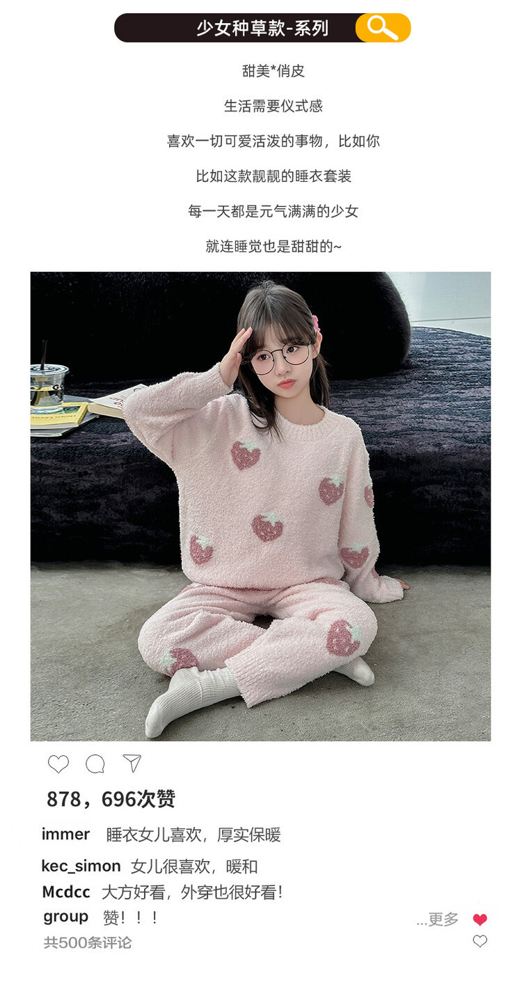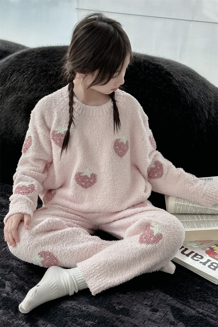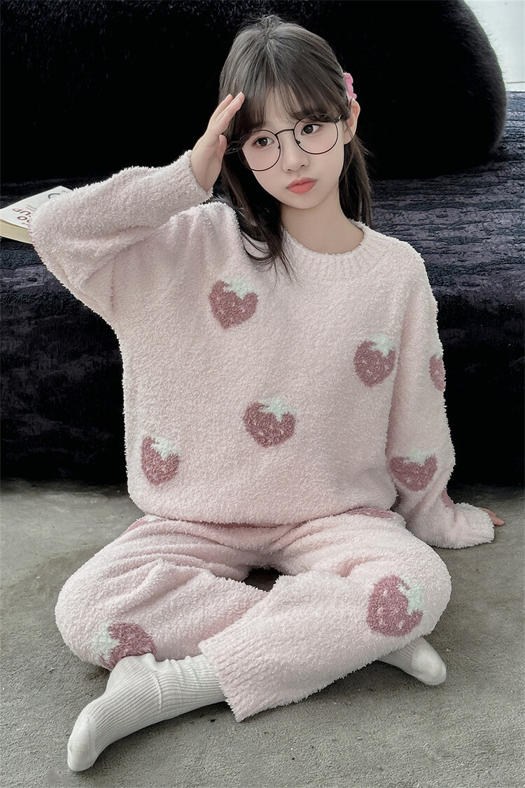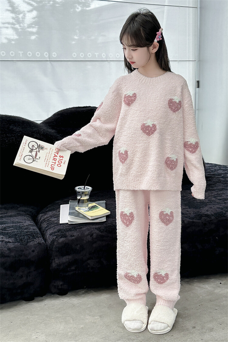 가을과 겨울 옷을 세트 소녀의 달콤한 잠옷 두꺼운 플란넬 따뜻한 중간과 큰 소녀의 공주 홈 옷 외부 옷스토어 가기