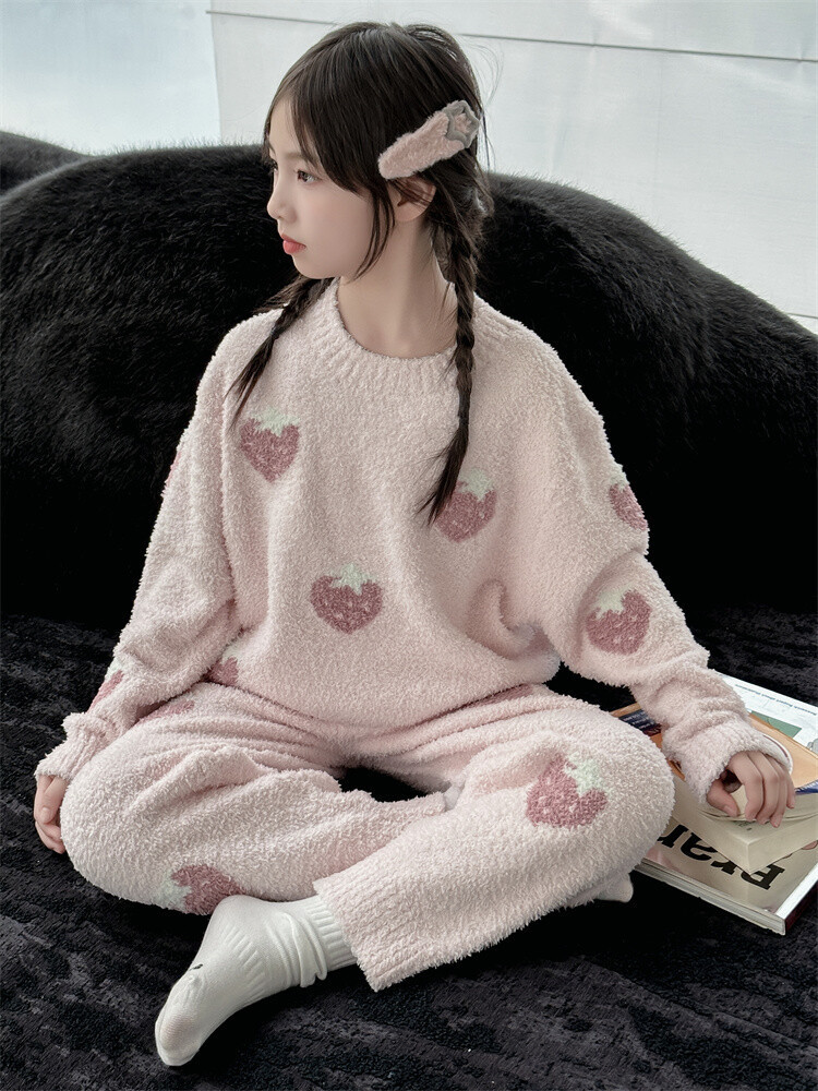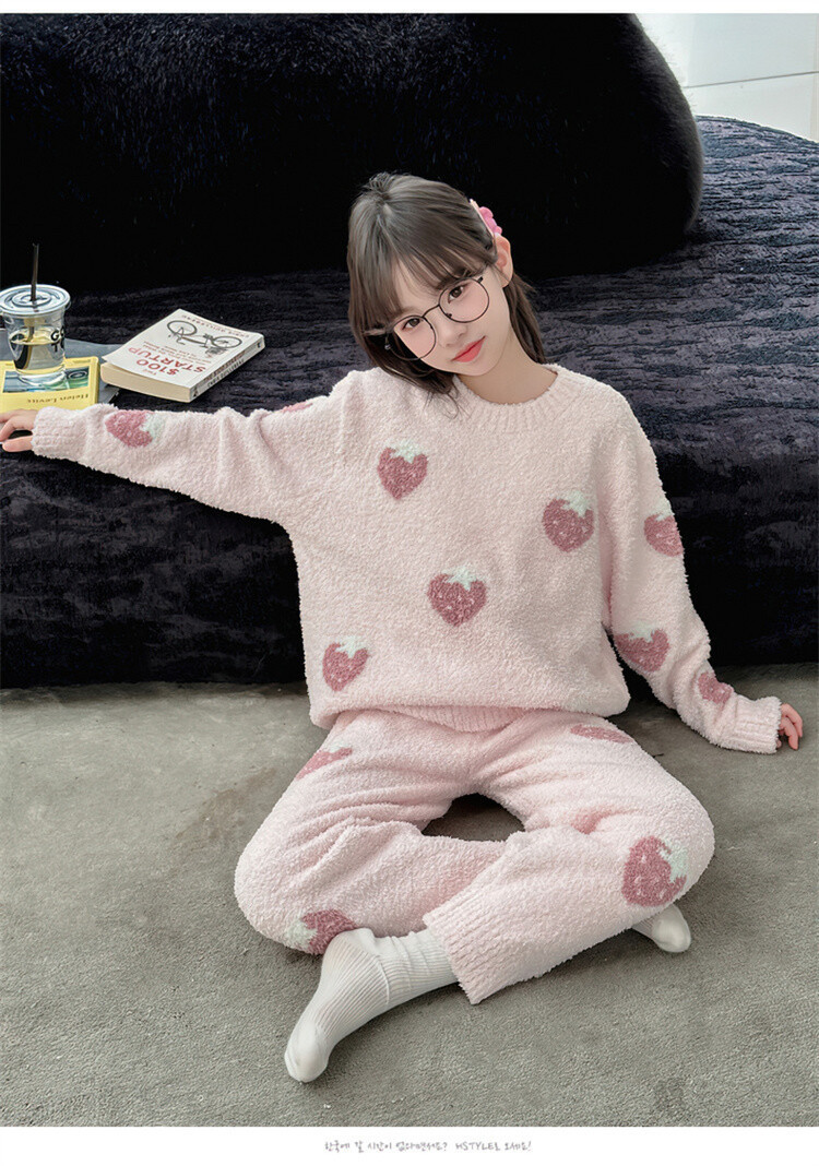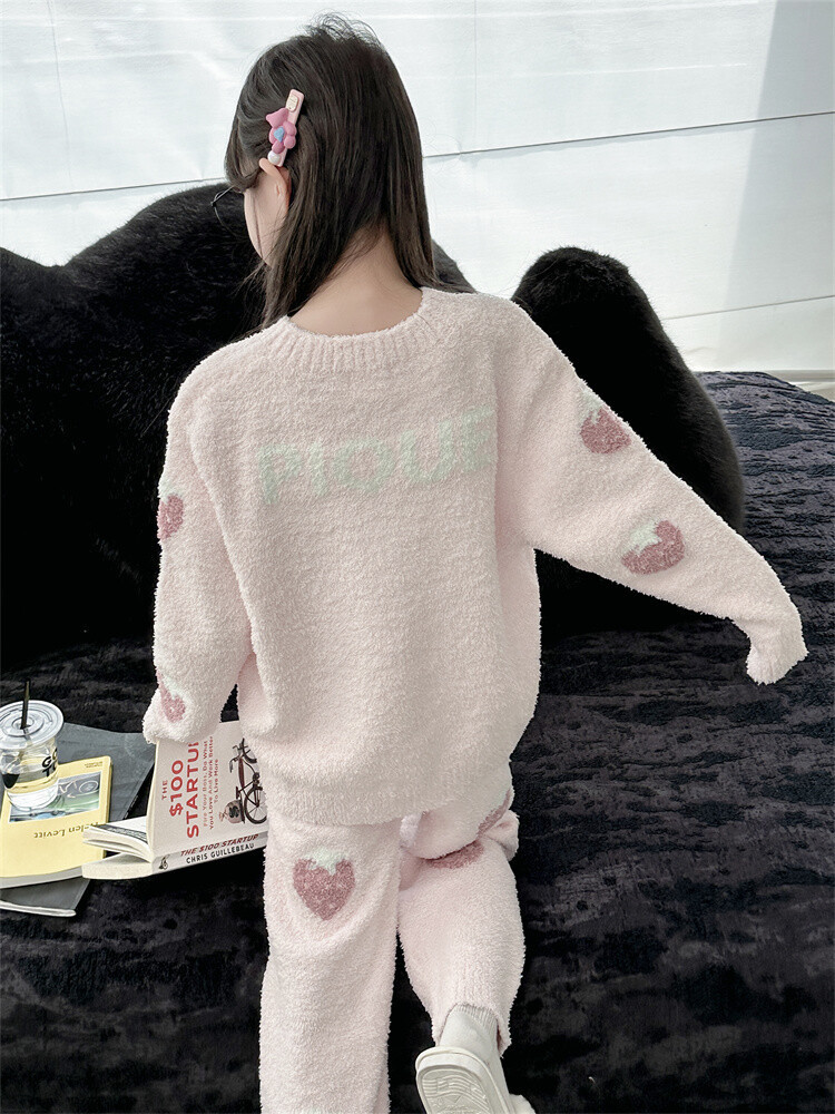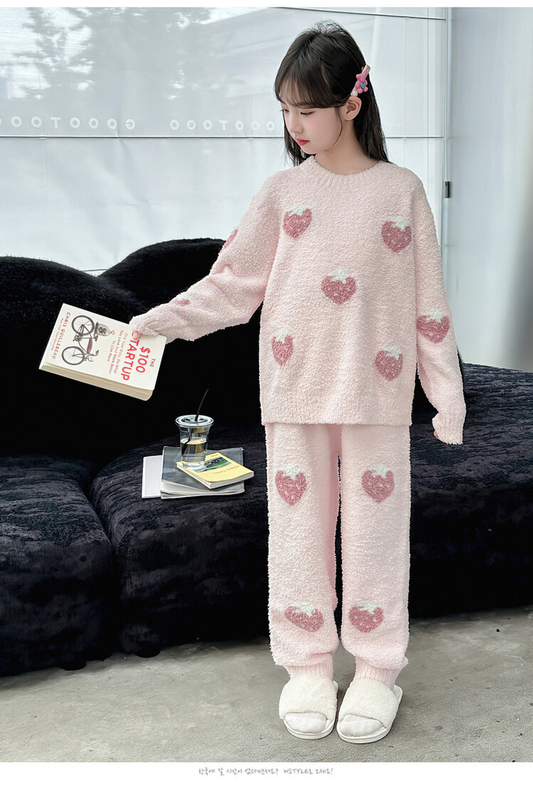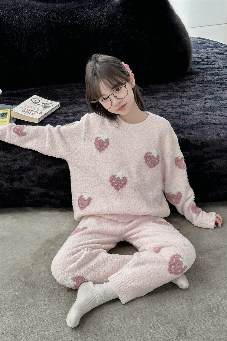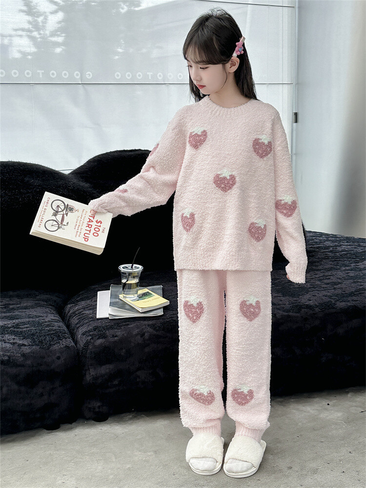 가을과 겨울 옷을 세트 소녀의 달콤한 잠옷 두꺼운 플란넬 따뜻한 중간과 큰 소녀의 공주 홈 옷 외부 옷스토어 가기