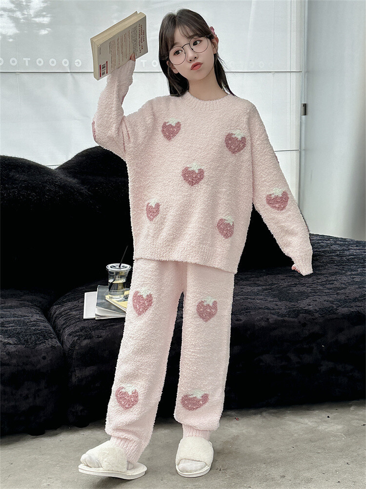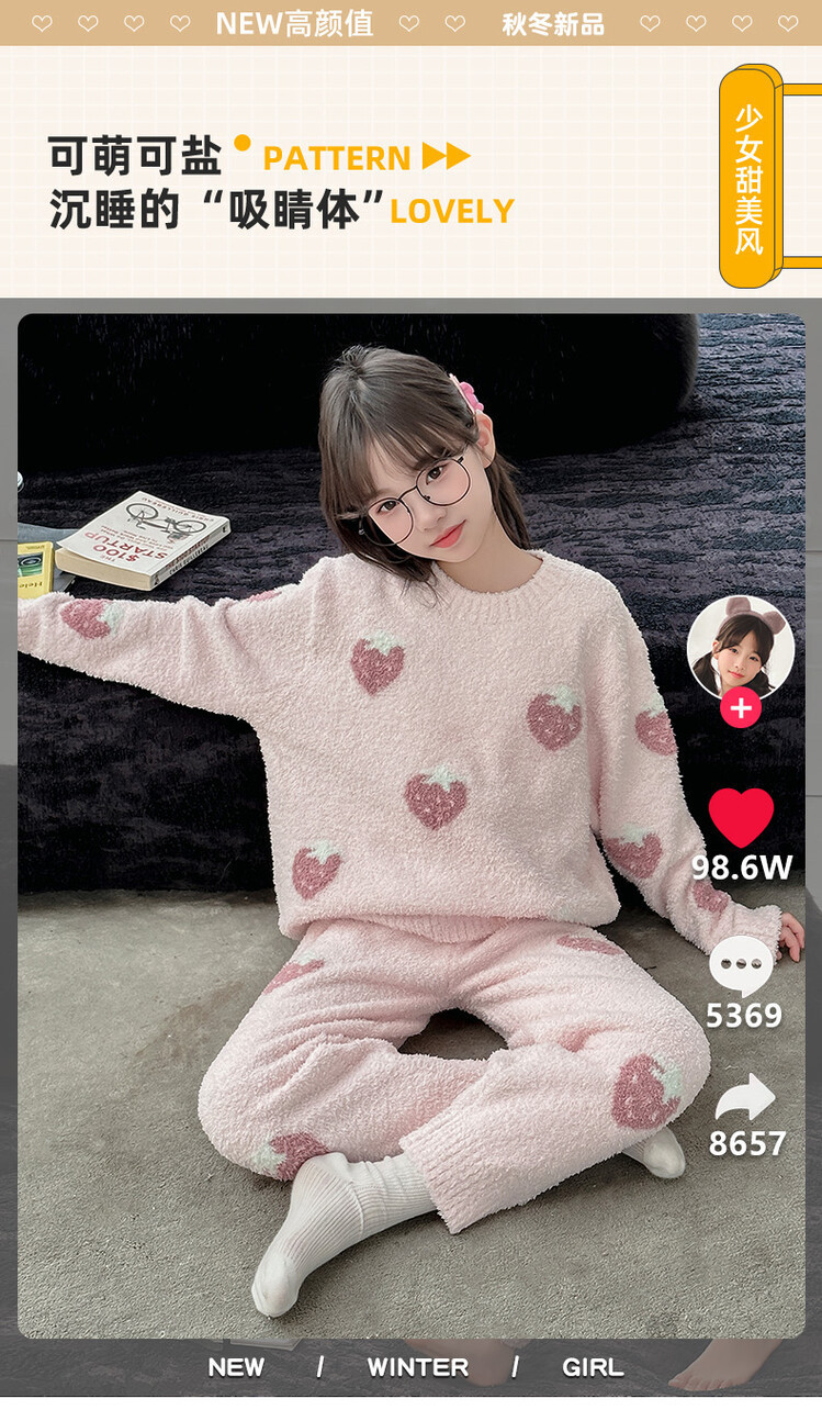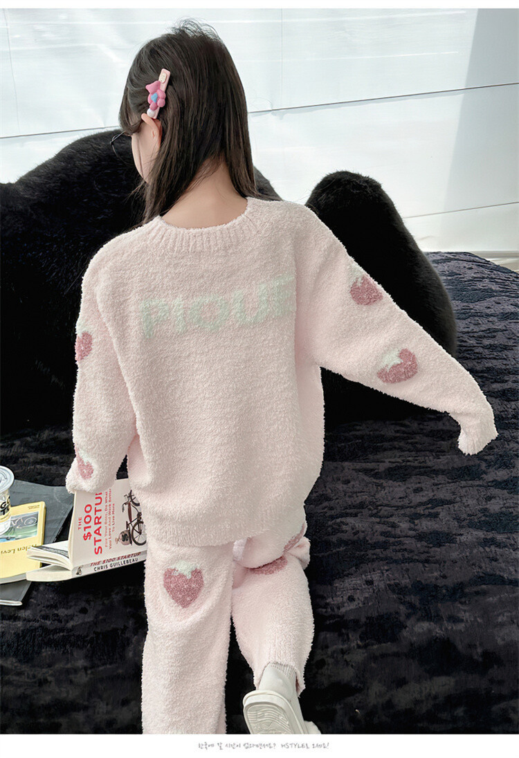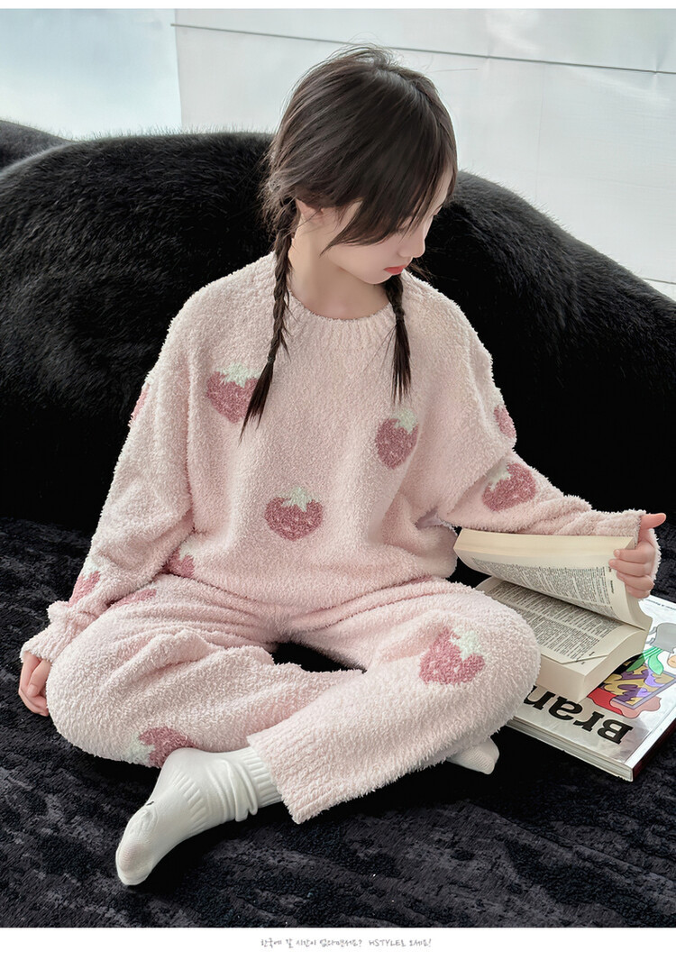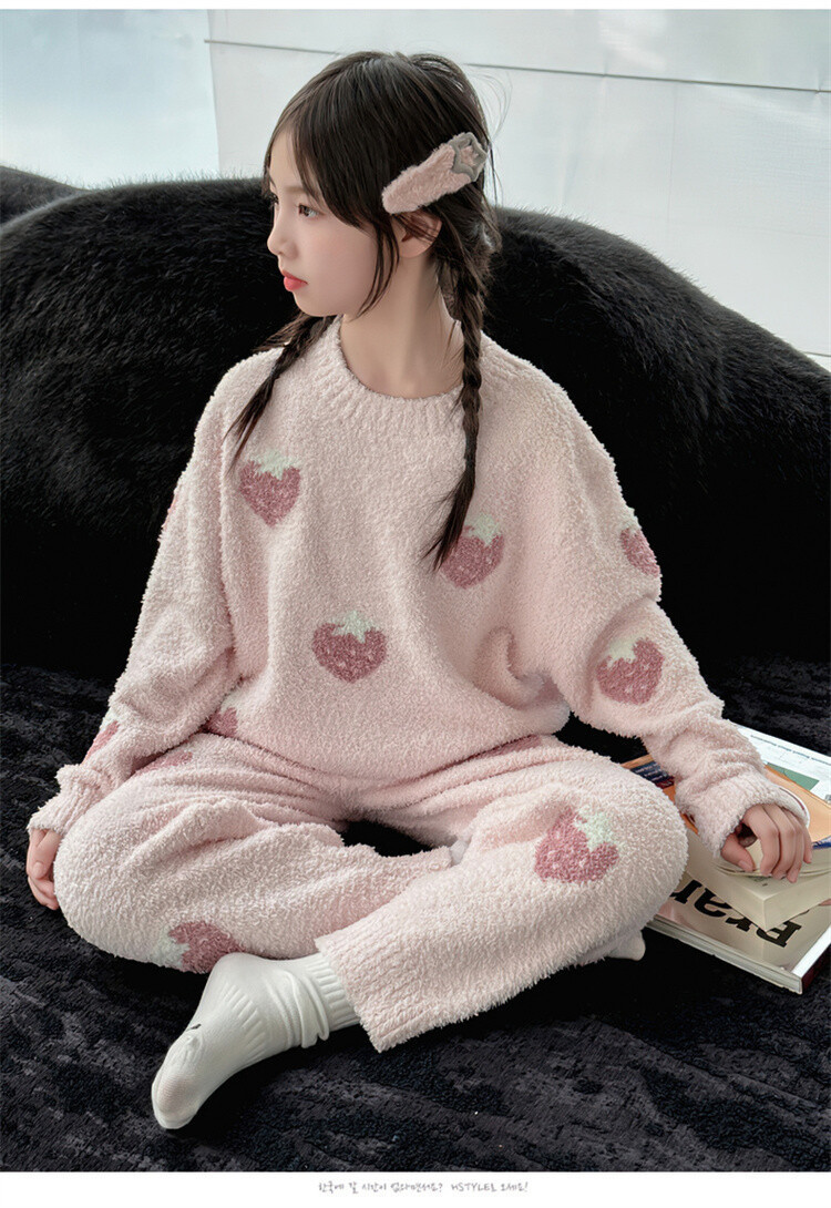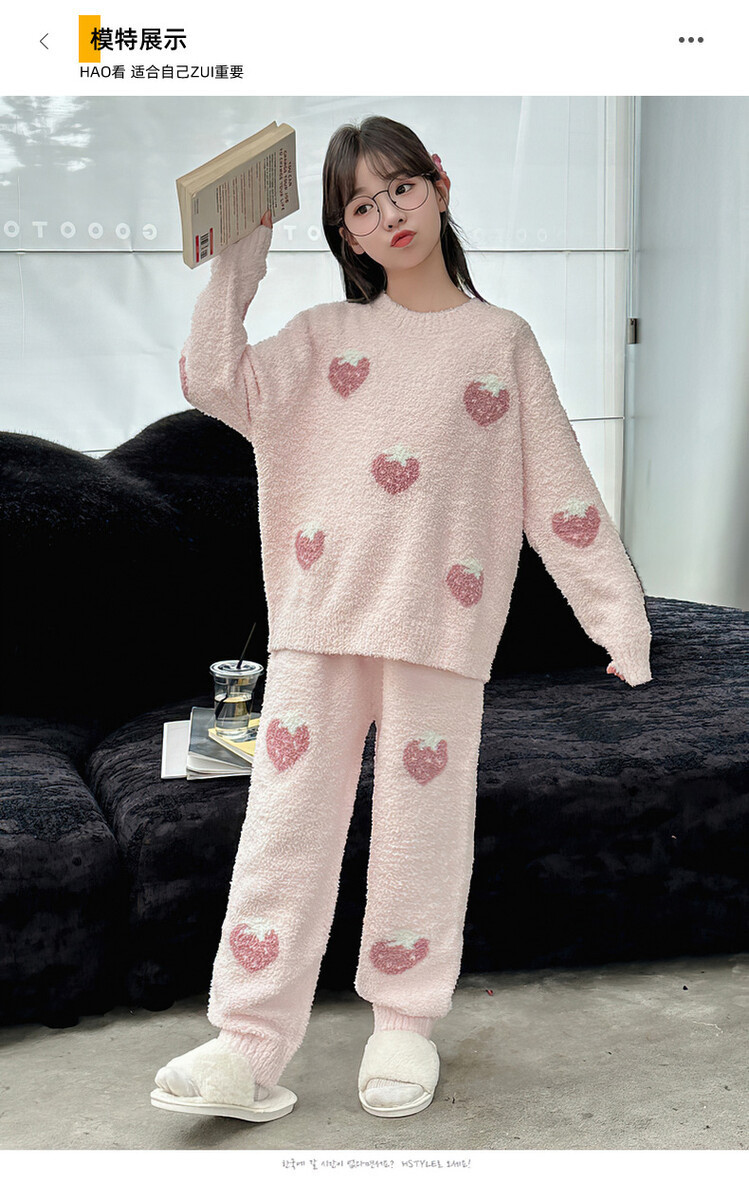 가을과 겨울 옷을 세트 소녀의 달콤한 잠옷 두꺼운 플란넬 따뜻한 중간과 큰 소녀의 공주 홈 옷 외부 옷스토어 가기