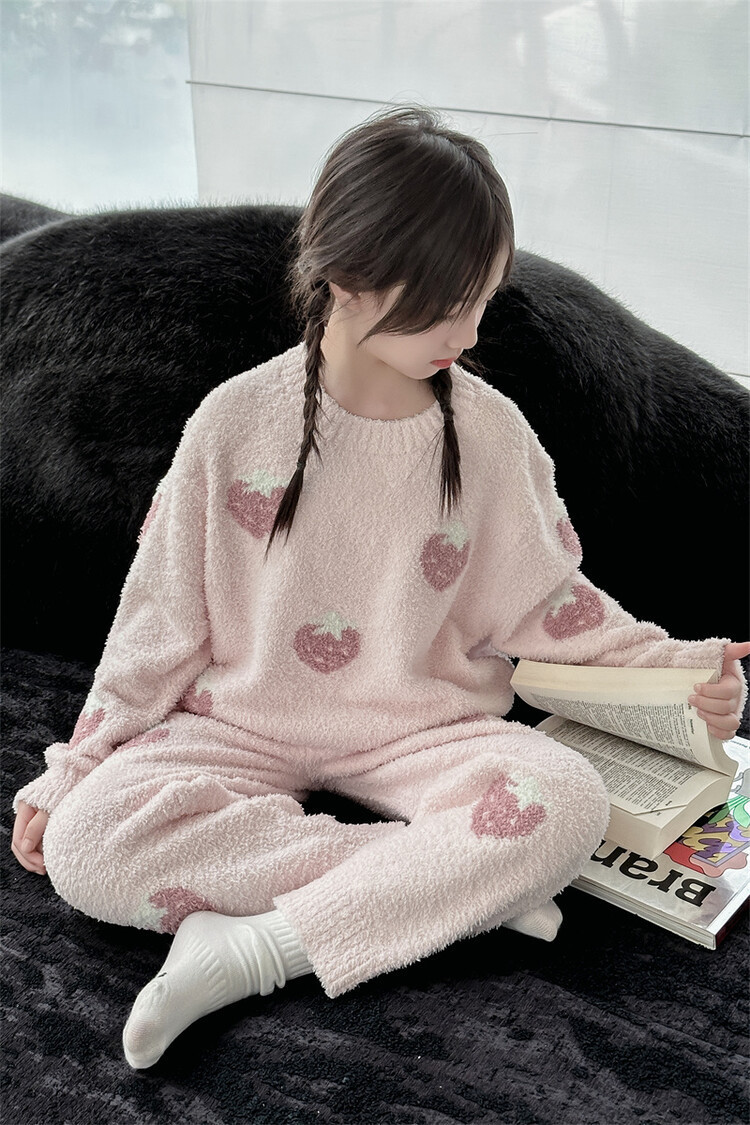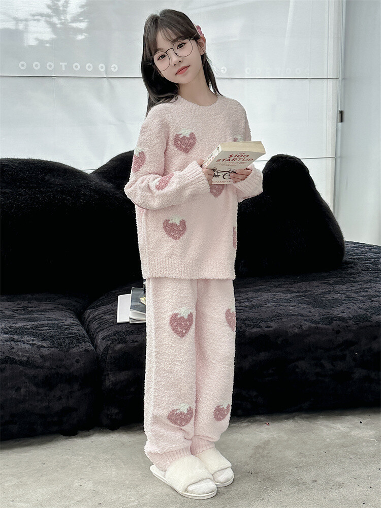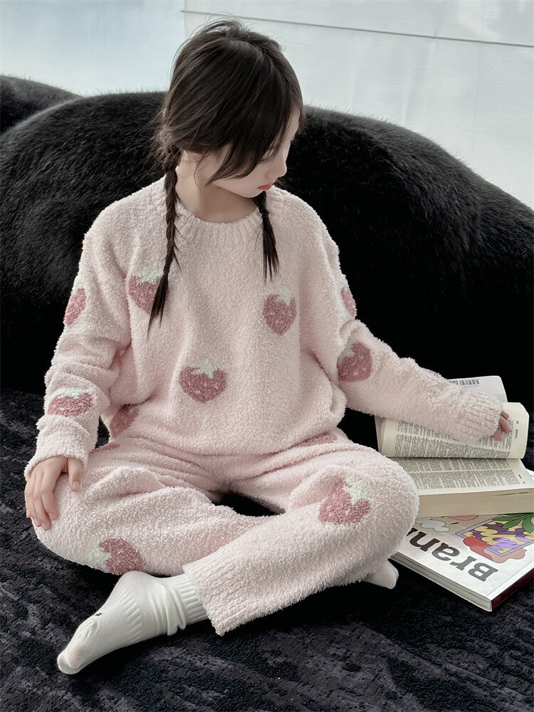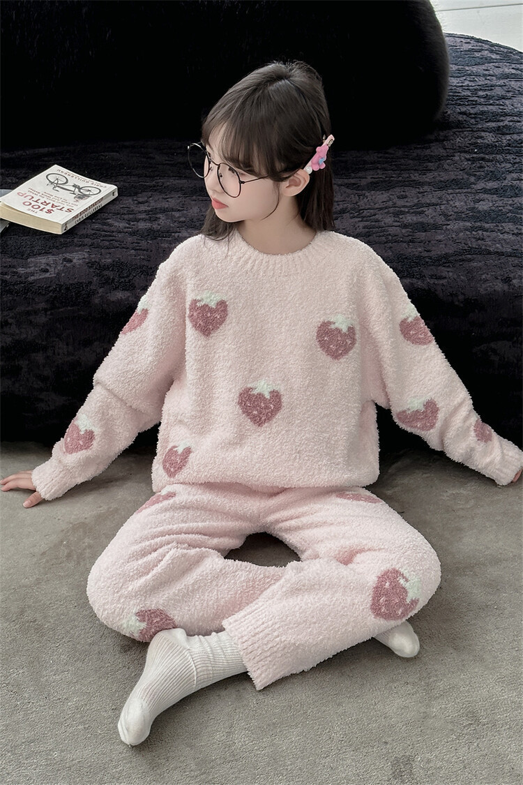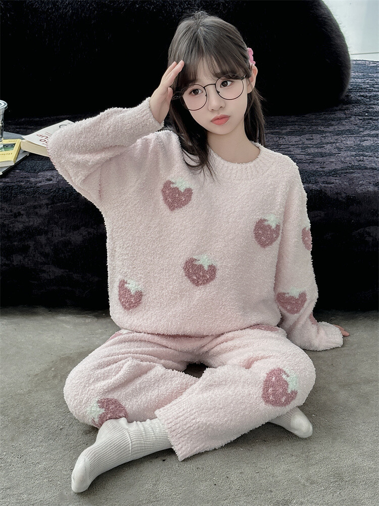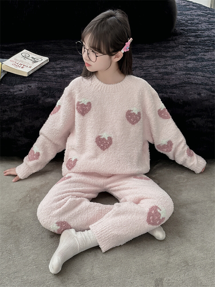 가을과 겨울 옷을 세트 소녀의 달콤한 잠옷 두꺼운 플란넬 따뜻한 중간과 큰 소녀의 공주 홈 옷 외부 옷