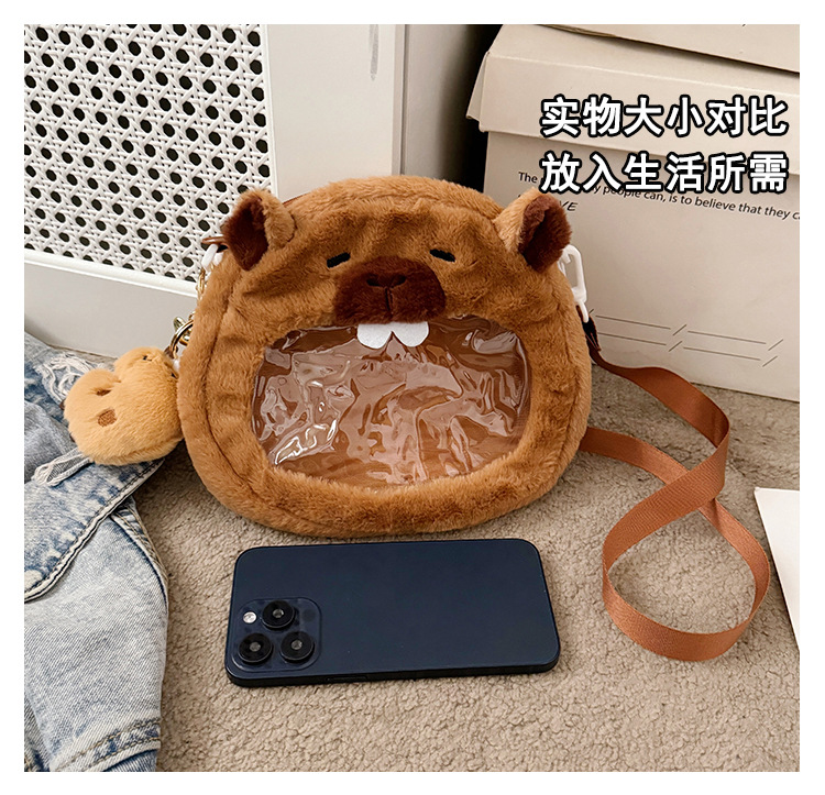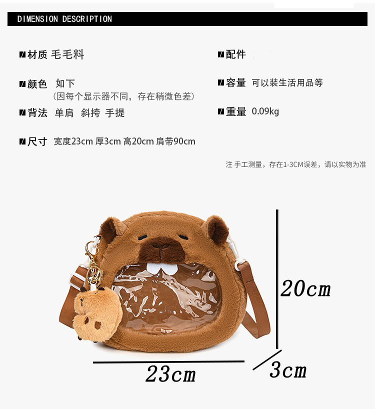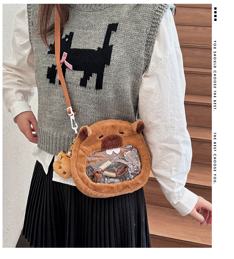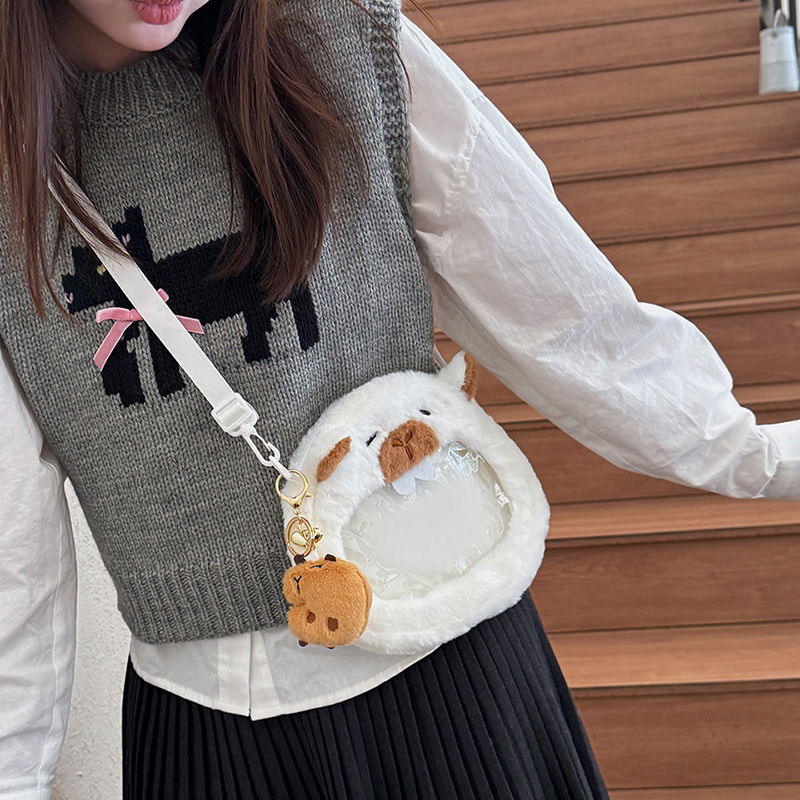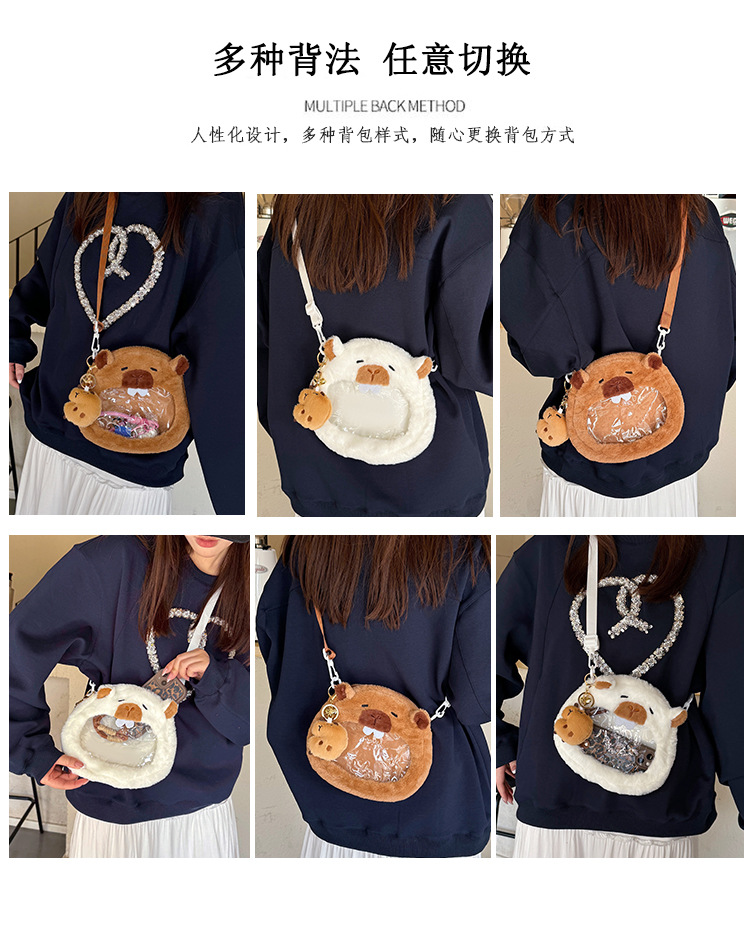 카피라라 귀여운 시스루 작은 원형 가방 소녀 하트 소프트 소녀 데일리 다용도 크로스 바디 백 플러시 카피 바라 통증 가방스토어 가기