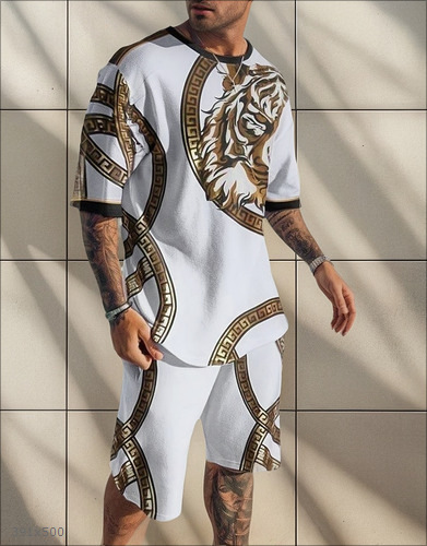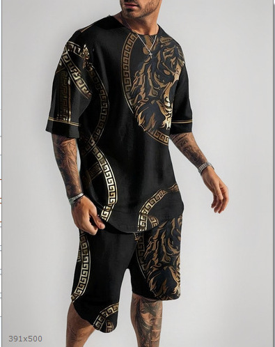 2025 국경 대외 무역 새로운 만화 동물 3D 디지털 인쇄 남성 티셔츠 스포츠 세트 캐주얼 플러스 사이즈 짧은 소매