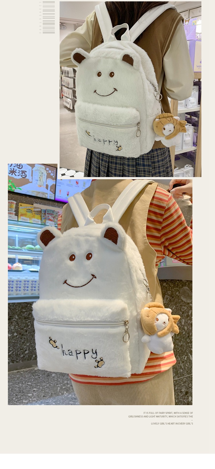 일본과 한국 스타일 하라주쿠 Ins 귀여운 곰 배낭 대용량 중학교 고등학교 대학생 스쿨 백 여성 캐주얼 배낭스토어 가기