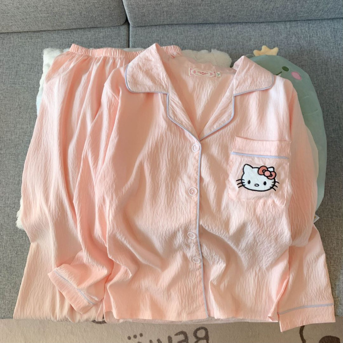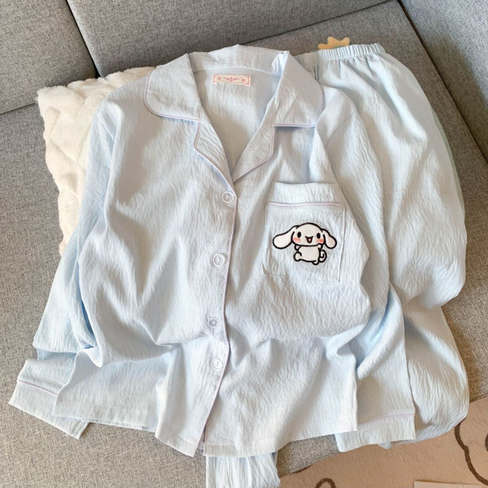 라이브 온천 및 가을 새로운 Ins 스타일 달콤한 만화 잠옷 여성 구름 면 긴 소매 바지 홈 의류 세트스토어 가기