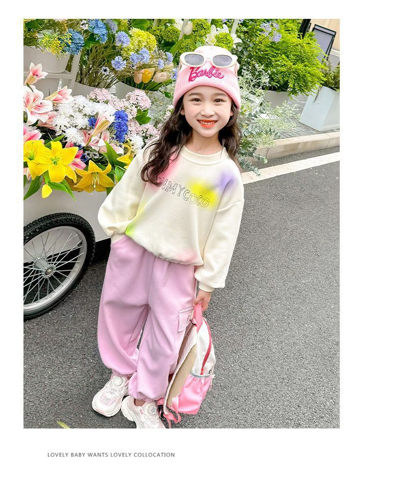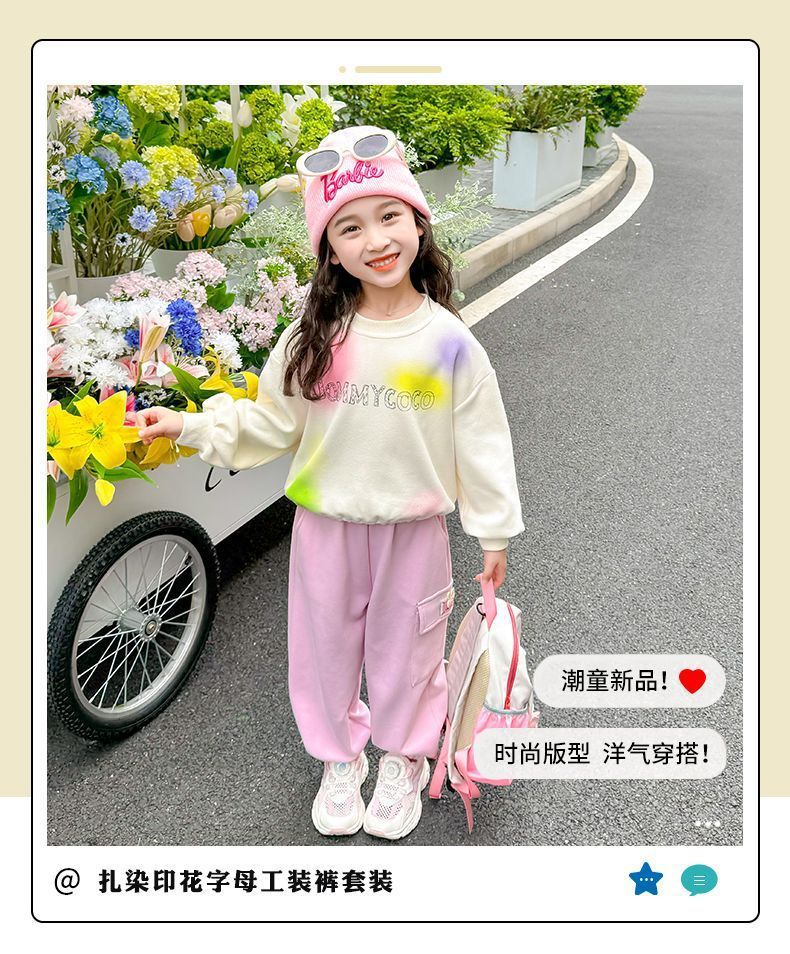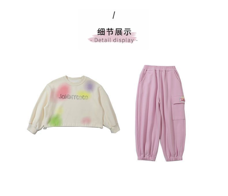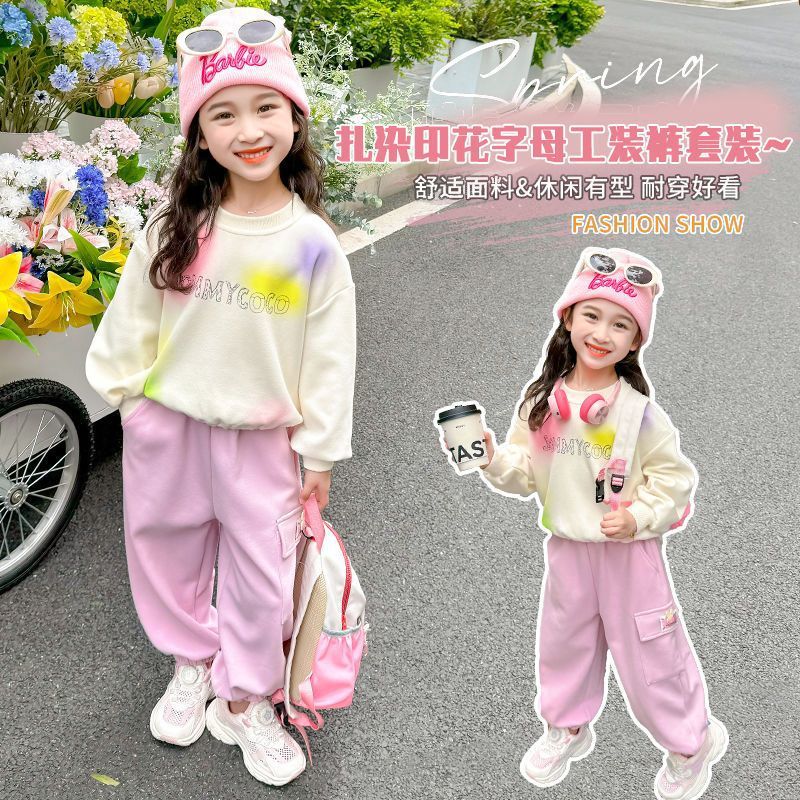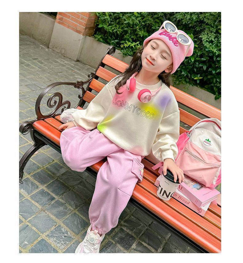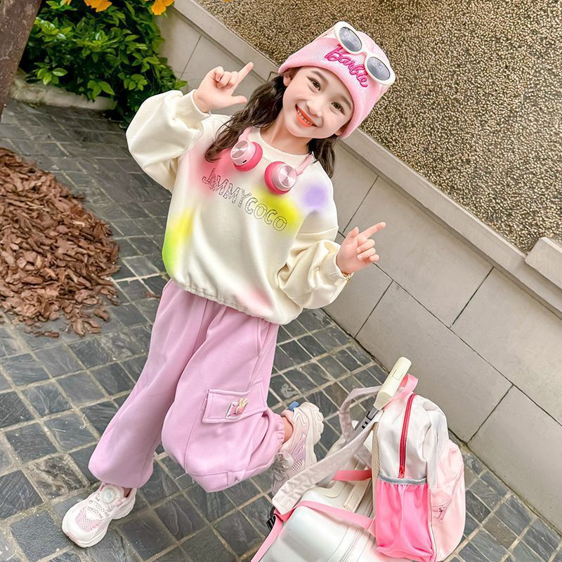 소녀 세트 봄과 가을 서양식 새로운 아기 소녀 2024 스웨트 셔츠 어린이 캐주얼 가을 인터넷 기념 소녀 투피스 세트스토어 가기