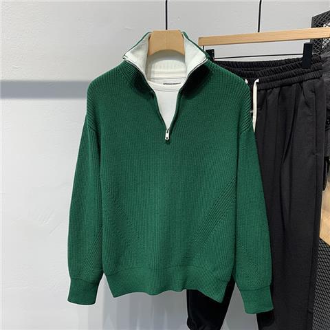 2024 새로운 미국 스타일 트렌디 브랜드 레트로 터틀넥 스웨터 남자 가을 겨울 반 지퍼 올 매치베이스 긴팔 스웨터 트렌디스토어 가기