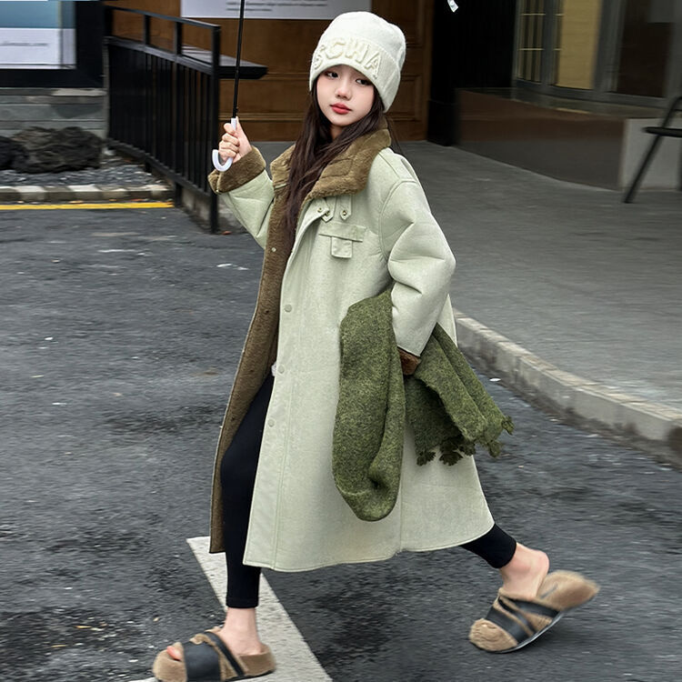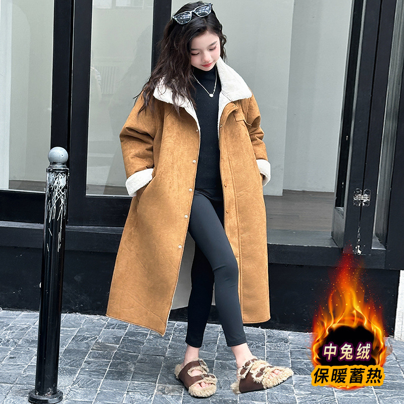 걸스 벨벳 코트 가을과 겨울 외국인 스타일 모피 통합 한국식 롱 코트 중 · 대형 어린이 유행 따뜻한 겨울옷