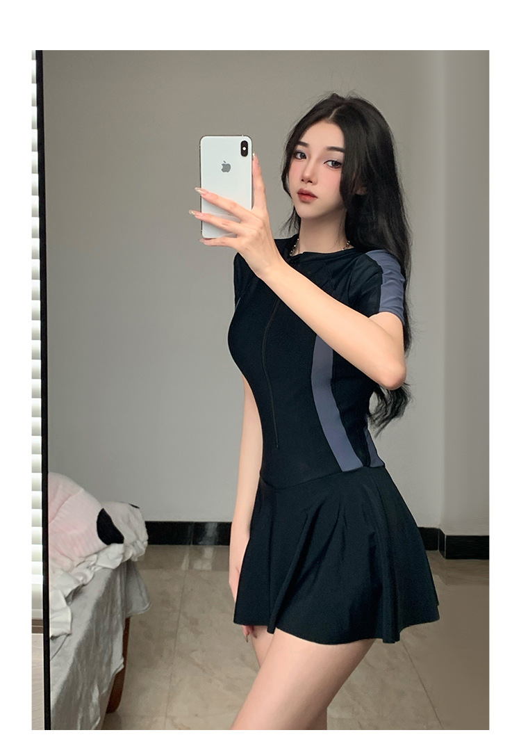 원피스 수영복 여성의 보수적 인 수영복 온천 스포츠 스타일 수영장 특별한 섹시한 고기 덮인 얇은 학생 복서 반바지