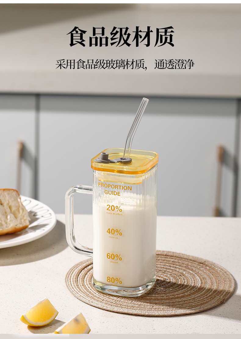 투명 가정용 유리 주스컵 손잡이 유리컵 커피컵 우유 사각컵 나트륨칼슘 유리