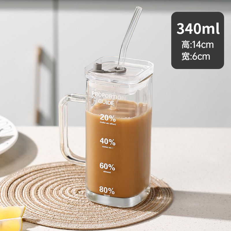 투명 가정용 유리 주스컵 손잡이 유리컵 커피컵 우유 사각컵 나트륨칼슘 유리스토어 가기