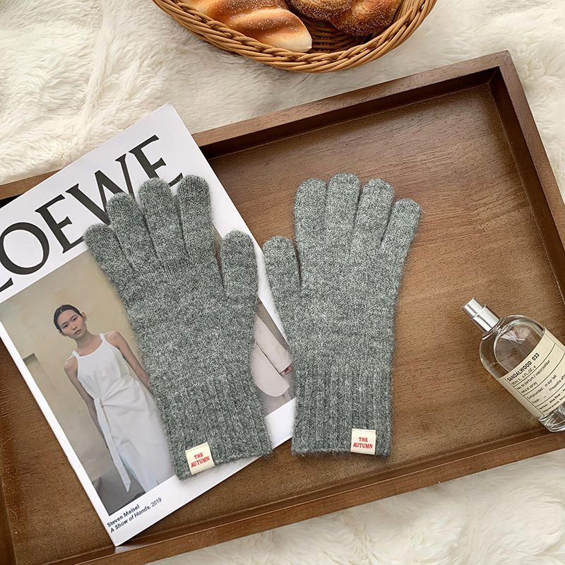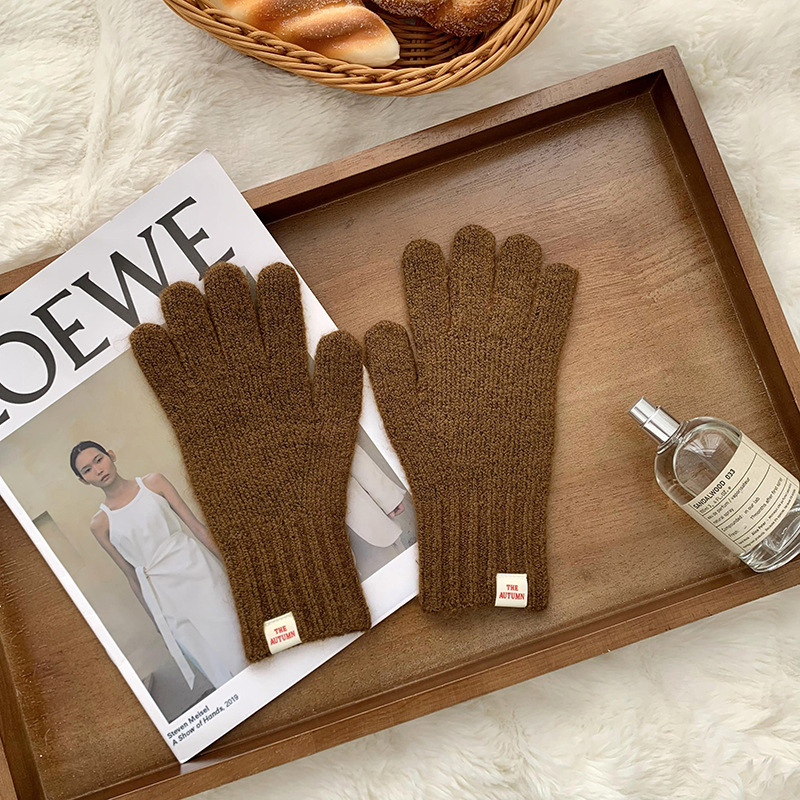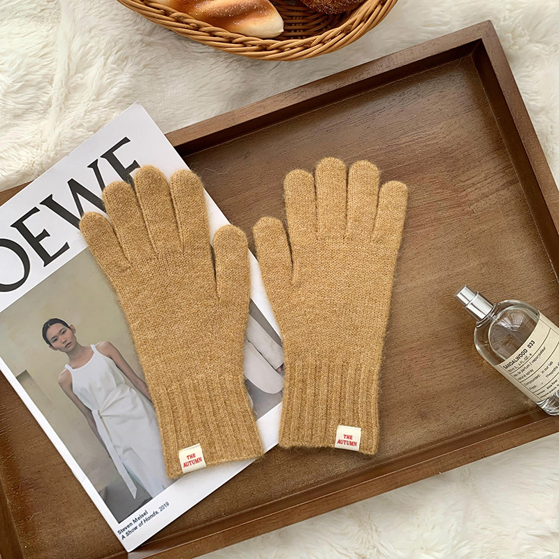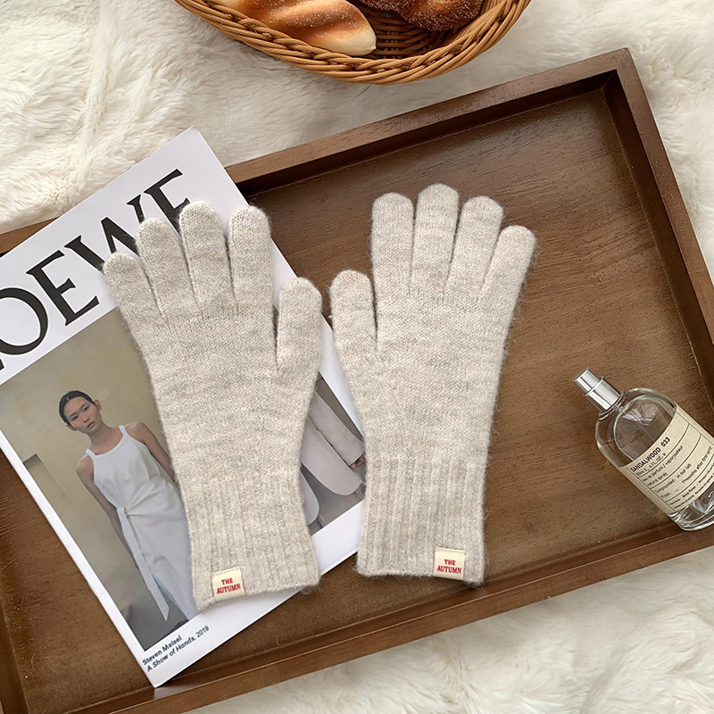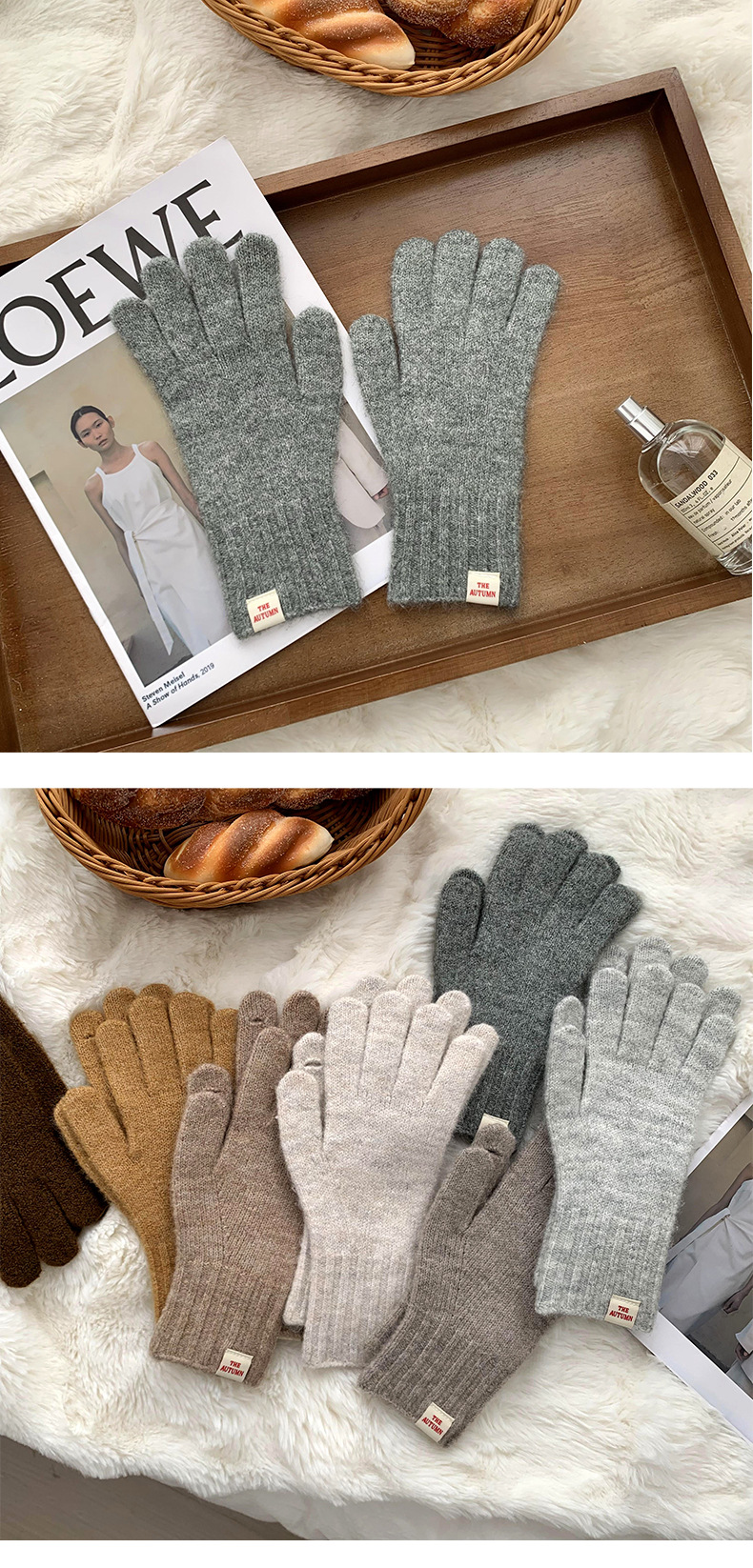 겨울 사이클링을위한 따뜻한 장갑 두꺼운 2025 새로운 기능 솔리드 컬러 터치 스크린 모직 니트 장갑 도매