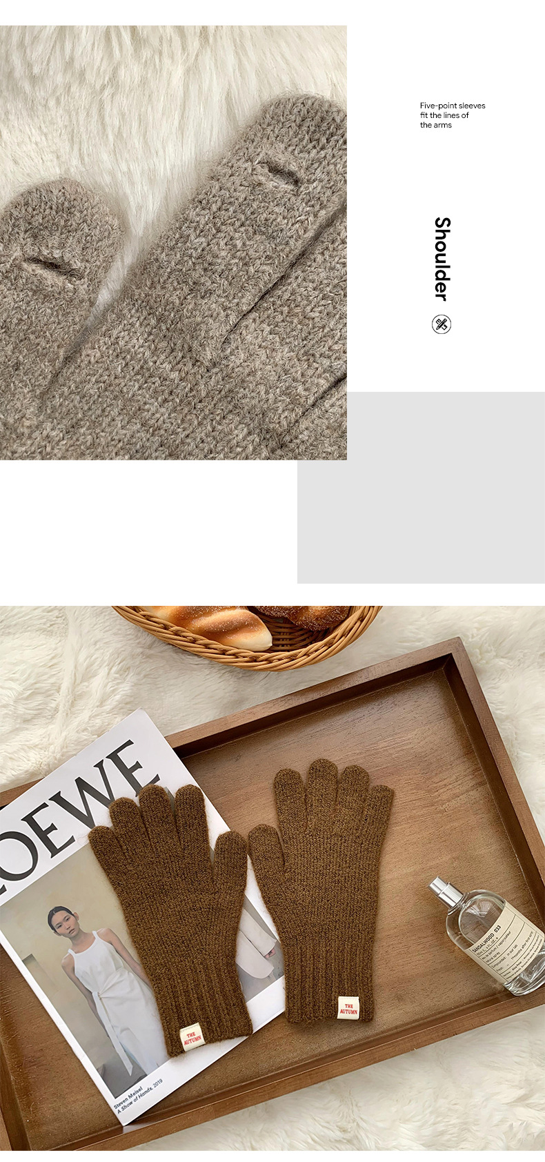 겨울 사이클링을위한 따뜻한 장갑 두꺼운 2025 새로운 기능 솔리드 컬러 터치 스크린 모직 니트 장갑 도매스토어 가기