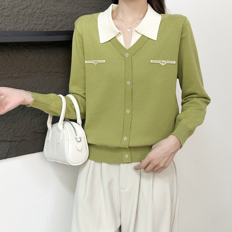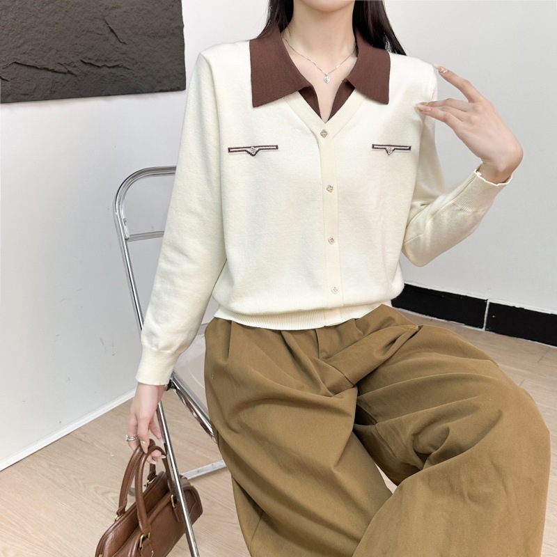 가짜 투피스 옷깃 최고 여성 세련된 긴팔 티셔츠 새 봄과 가을 느슨한 니트 셔츠 내베이스 셔츠스토어 가기