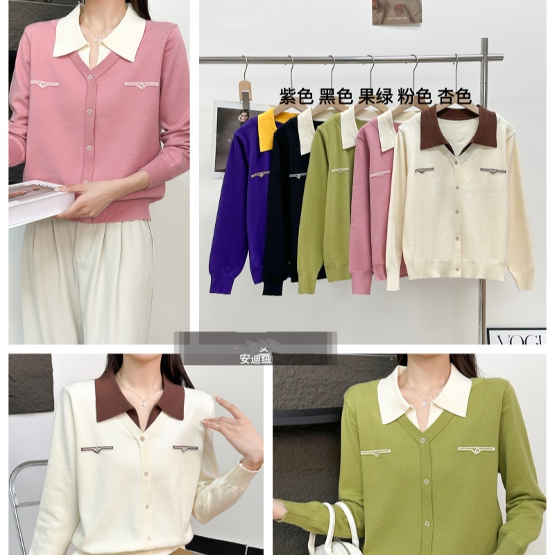 假两件翻领套头长袖时尚针织衫女秋冬装新款洋气减龄打底衫上衣潮