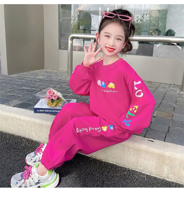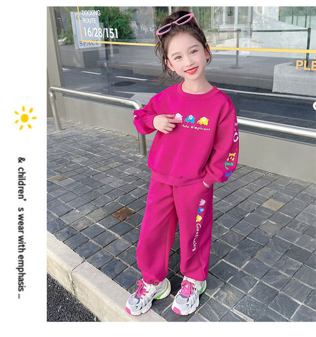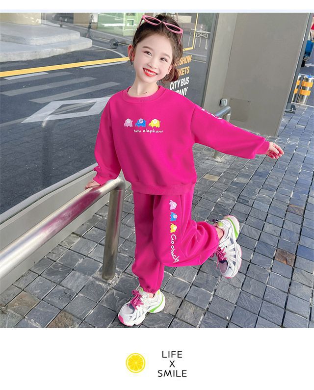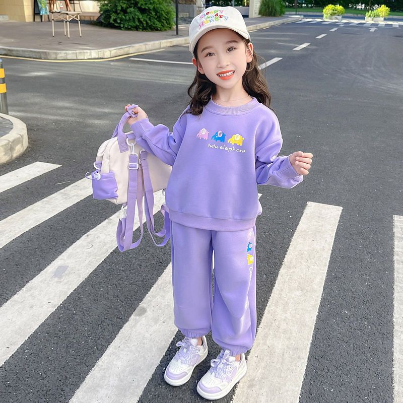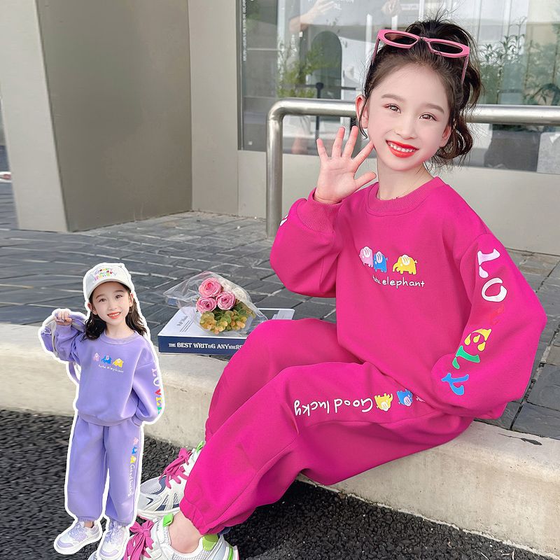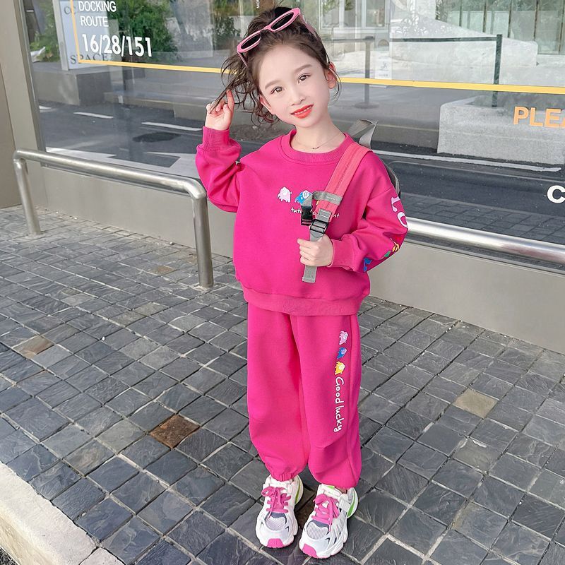 소녀 봄과 가을 세트 소녀 아기 소녀 가을 새로운 스타일 서양식 어린이 캐주얼 스웨트 셔츠 소녀 가을 의류 2 조각 유행 세트