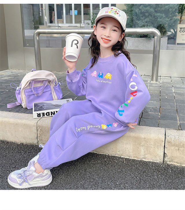소녀 봄과 가을 세트 소녀 아기 소녀 가을 새로운 스타일 서양식 어린이 캐주얼 스웨트 셔츠 소녀 가을 의류 2 조각 유행 세트스토어 가기