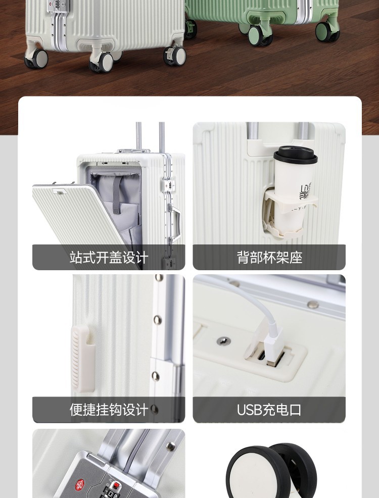 다기능 전면 개방 알루미늄 프레임 수하물 케이스 20 인치 탑승 케이스 여성 여행 케이스 남성 24 하이 컬러 값 트롤리 케이스