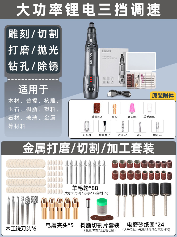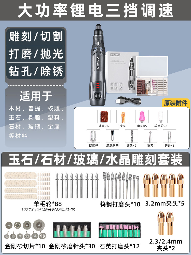 델리 전기 밀 소형 휴대용 폴리싱 및 폴리싱 아티팩트 전기 옥 나무 조각 및 절단 도구 미니 전기 드릴스토어 가기