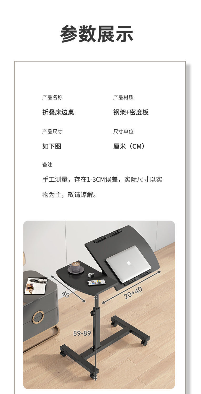 침대 옆 테이블 움직일 수 있는 침대 컴퓨터 작은 테이블 침실 리프팅 연구 책상 홈 노트북 접이식 테이블스토어 가기