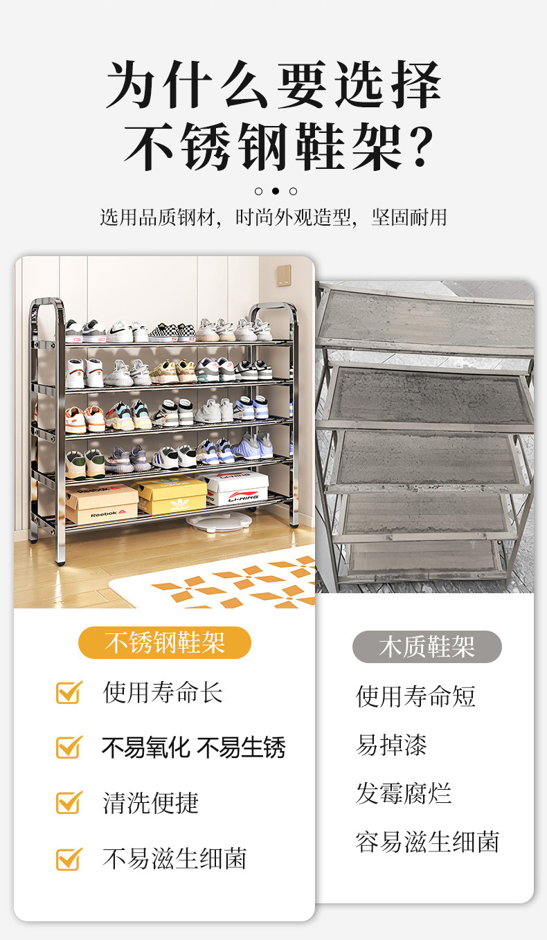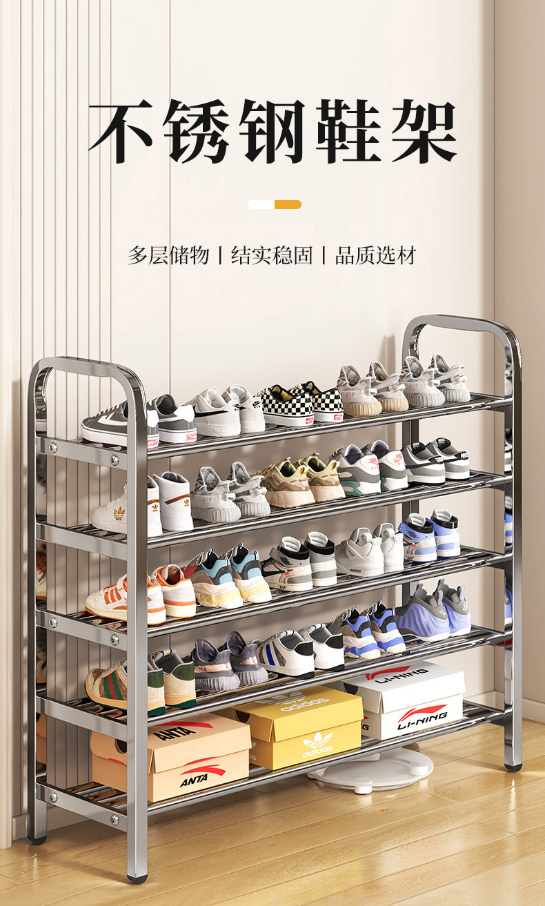 스테인레스 스틸 간단한 신발 랙 가정용 다층 실내 신발 저장 랙 기숙사 문 렌탈 룸 경제적 인 신발 캐비닛
