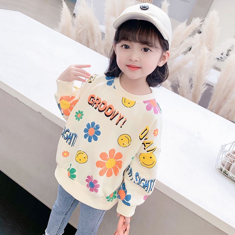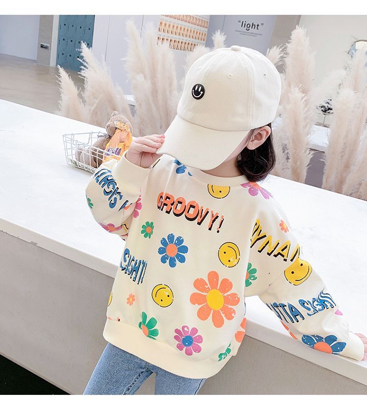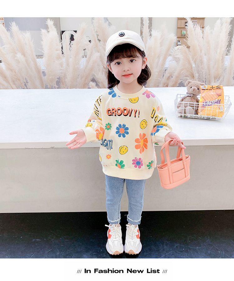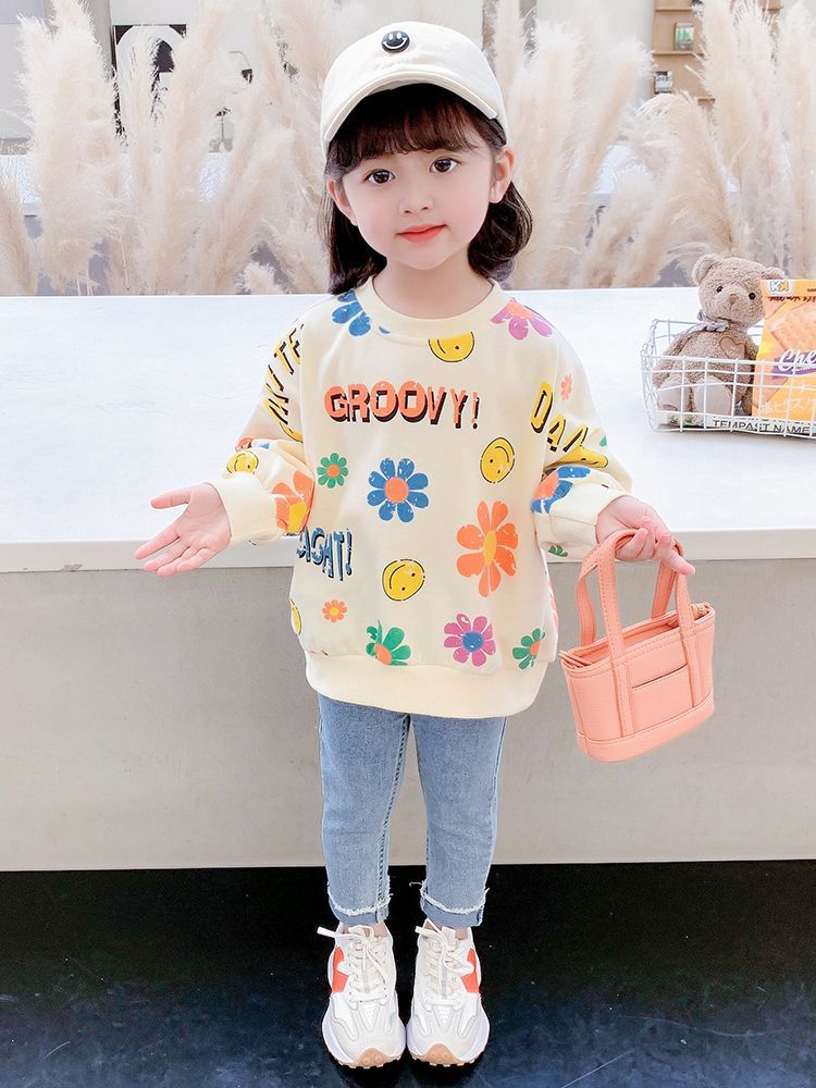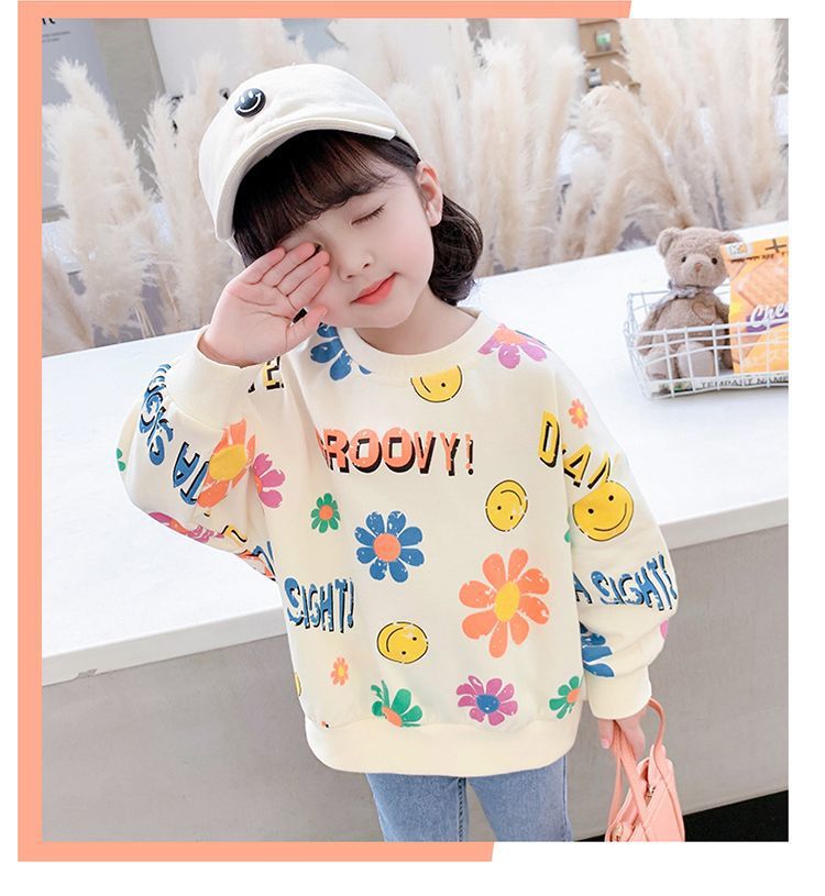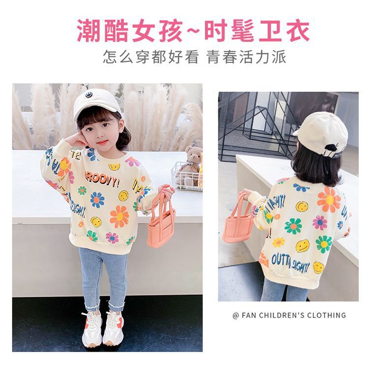 소녀 스웨트 셔츠 2024 봄과 가을 새로운 서양 스타일 유행 순면 가을 아기 가을 느슨한 긴 소매 어린이 정상스토어 가기