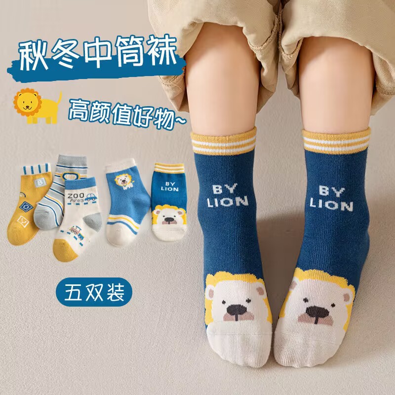 소녀 양말 가을과 겨울 만화 딸기 곰 귀여운 중형 및 대형 어린이 통기성 땀 흡수 양말 제조 업체 도매스토어 가기