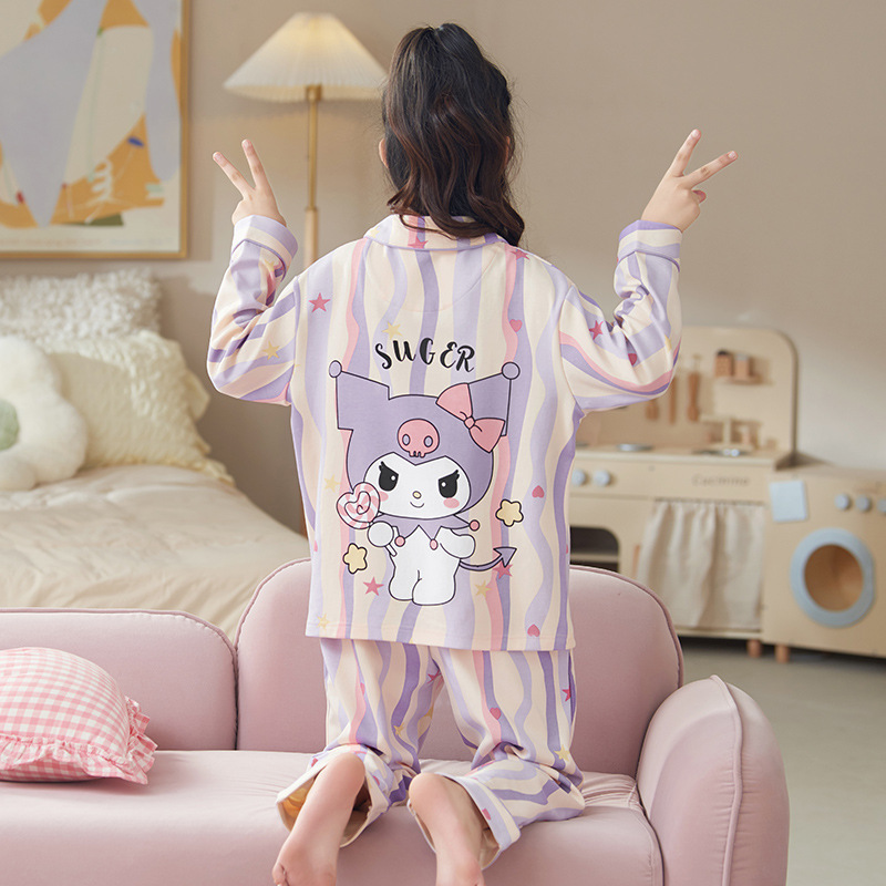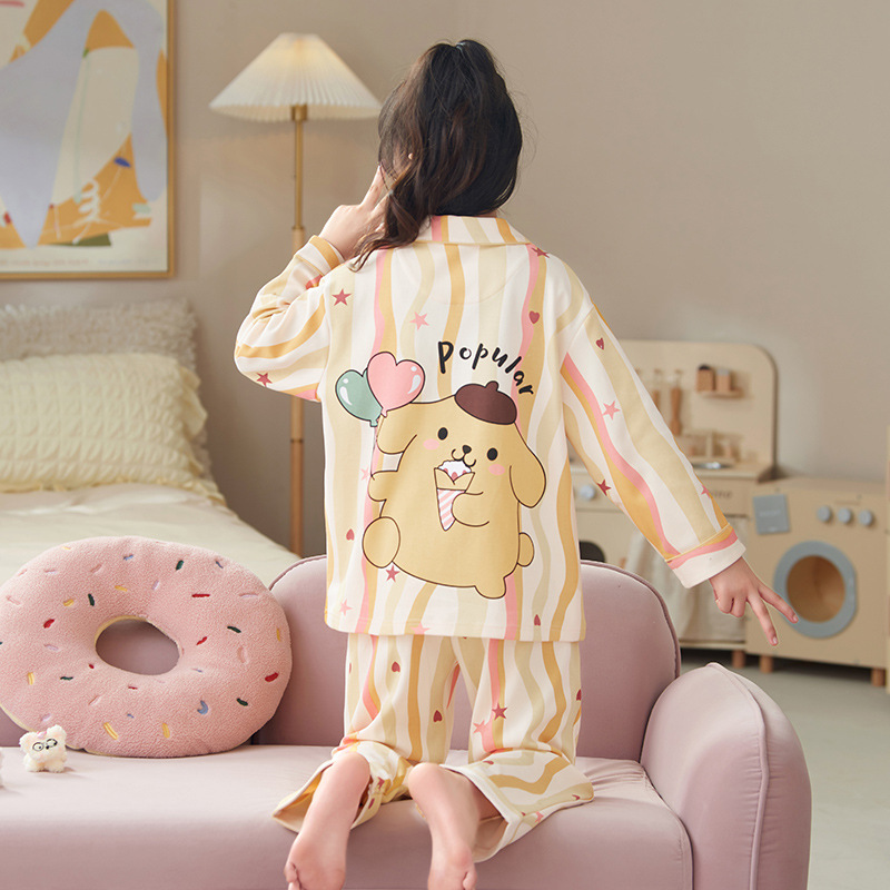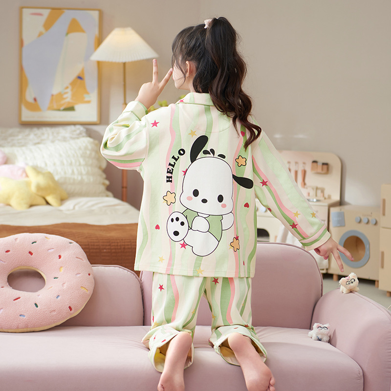 2024 새로운 소녀 잠옷 봄과 가을 어린이 소녀 긴 소매 가을 큰 어린이 서양식 공주 집 옷 세트