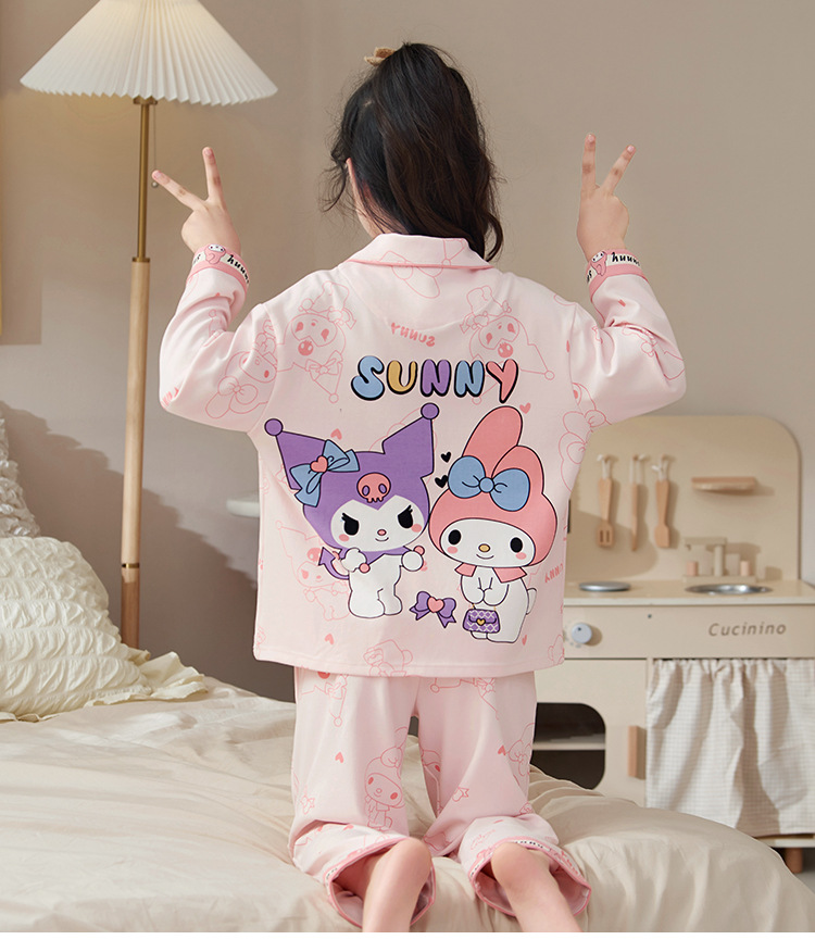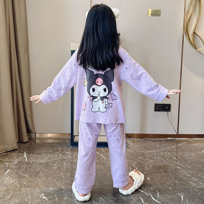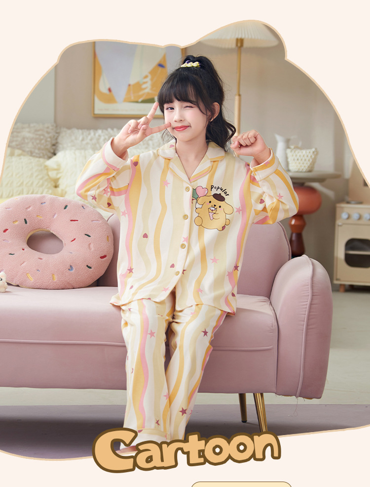 2024 새로운 소녀 잠옷 봄과 가을 어린이 소녀 긴 소매 가을 큰 어린이 서양식 공주 집 옷 세트스토어 가기