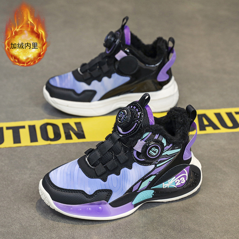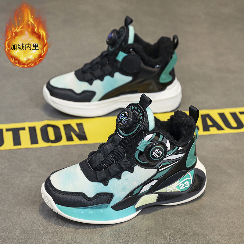 소년 신발 가을과 겨울 2024 새로운 어린이 기모 스포츠 농구 신발 큰 소년 미끄럼 방지 따뜻한 면화 신발