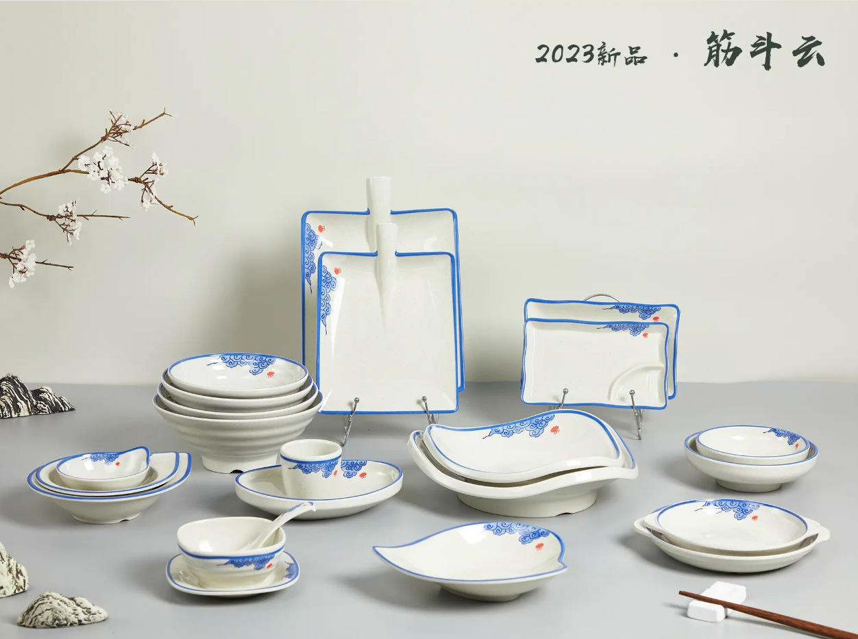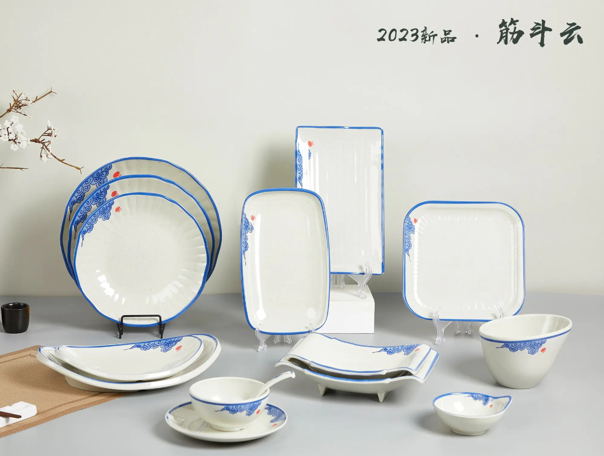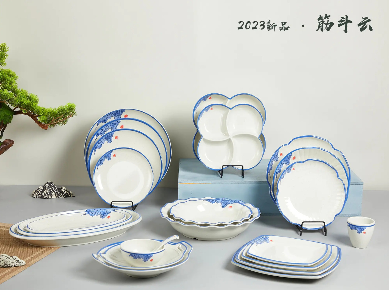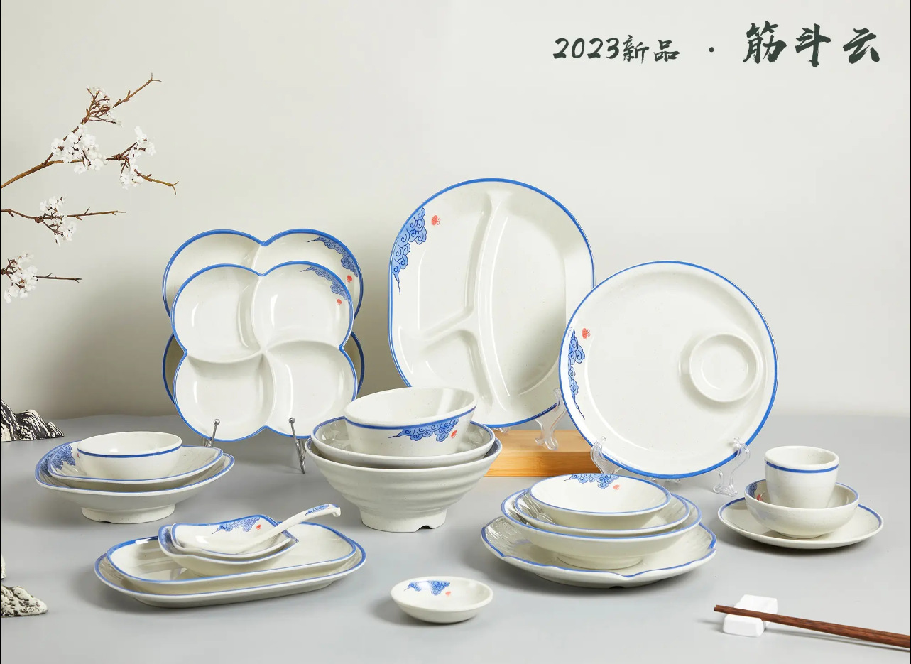 멜라민 식기 나선형 국수 그릇 대형 그릇 상업용 인조 도자기 국수집 중국식당 B515-8 유누오 인쇄 로고 밥그릇