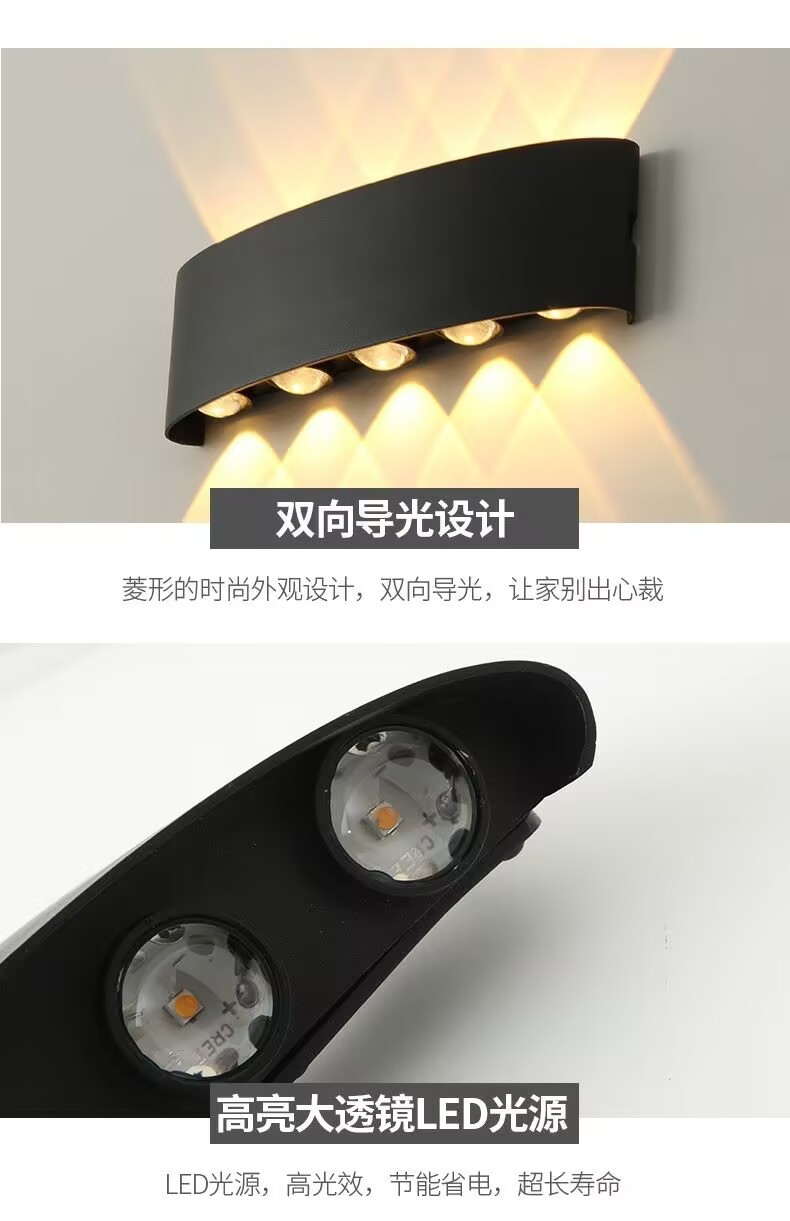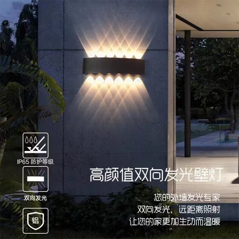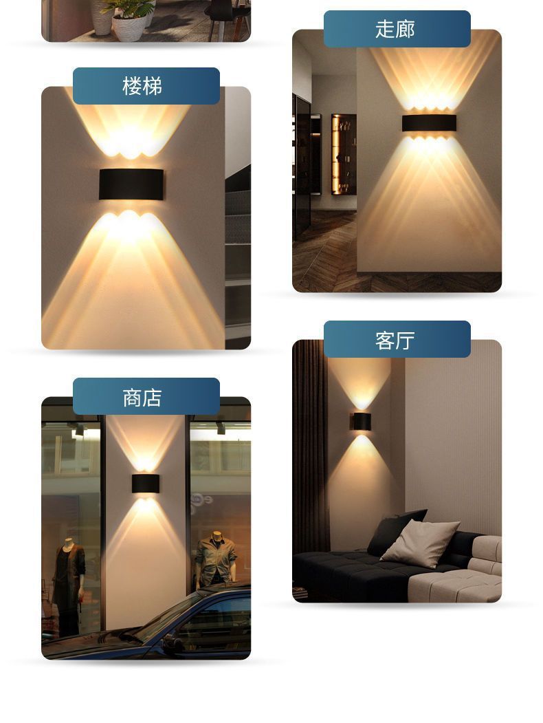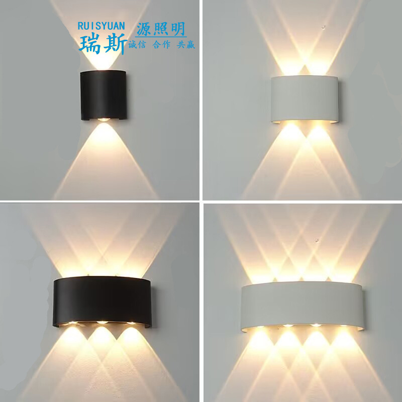 LED 방수 야외 벽 램프 더블 헤드 위아래로 빛나는 벽 램프 RGB 다채로운 램프 분위기 램프 창조적 인 통로 스포트라이트