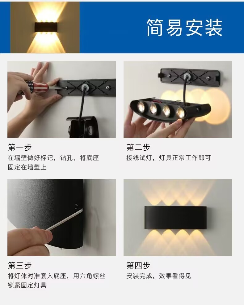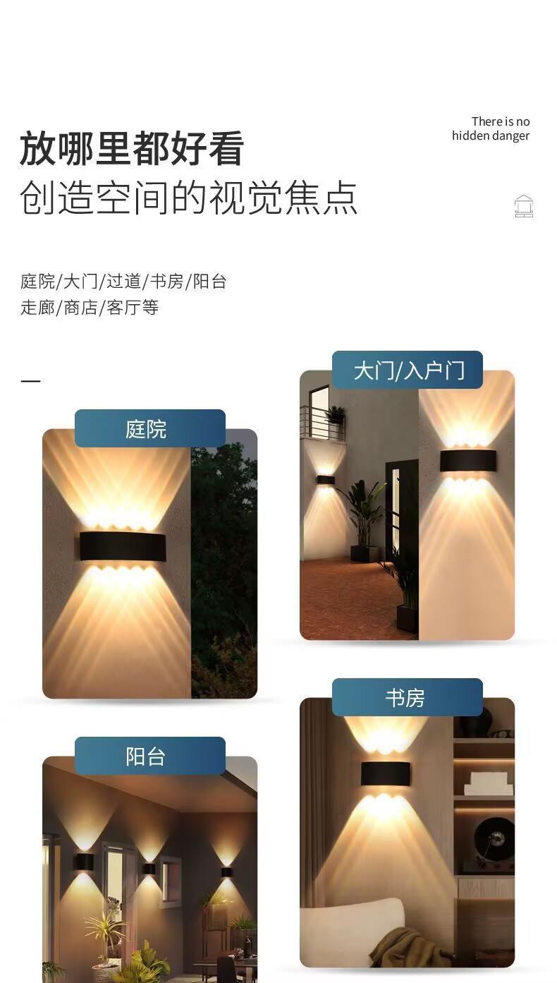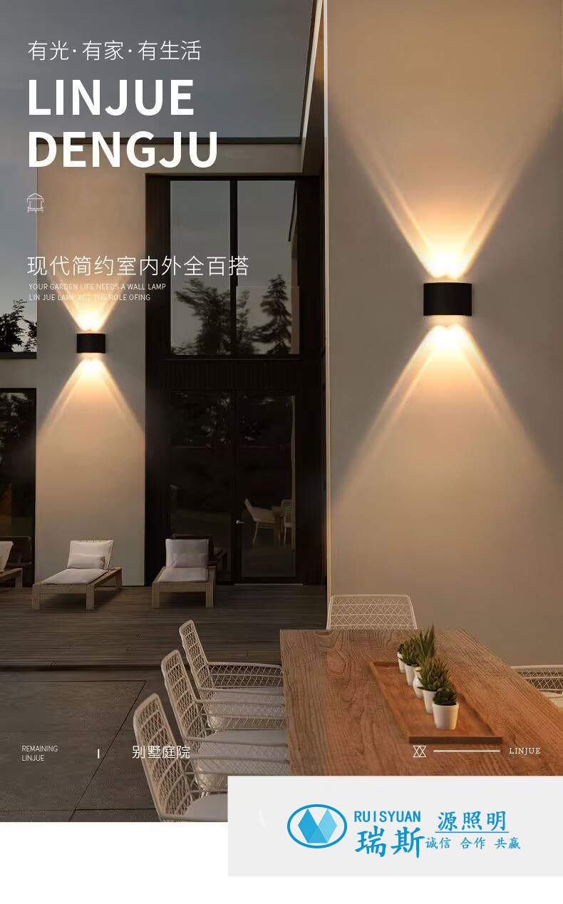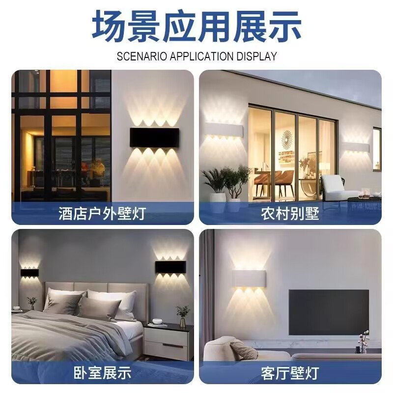 LED 방수 야외 벽 램프 더블 헤드 위아래로 빛나는 벽 램프 RGB 다채로운 램프 분위기 램프 창조적 인 통로 스포트라이트