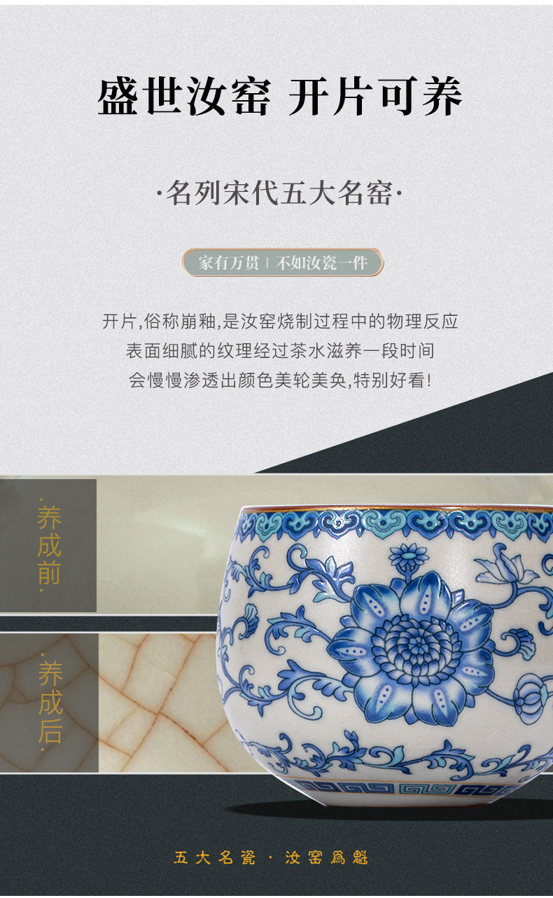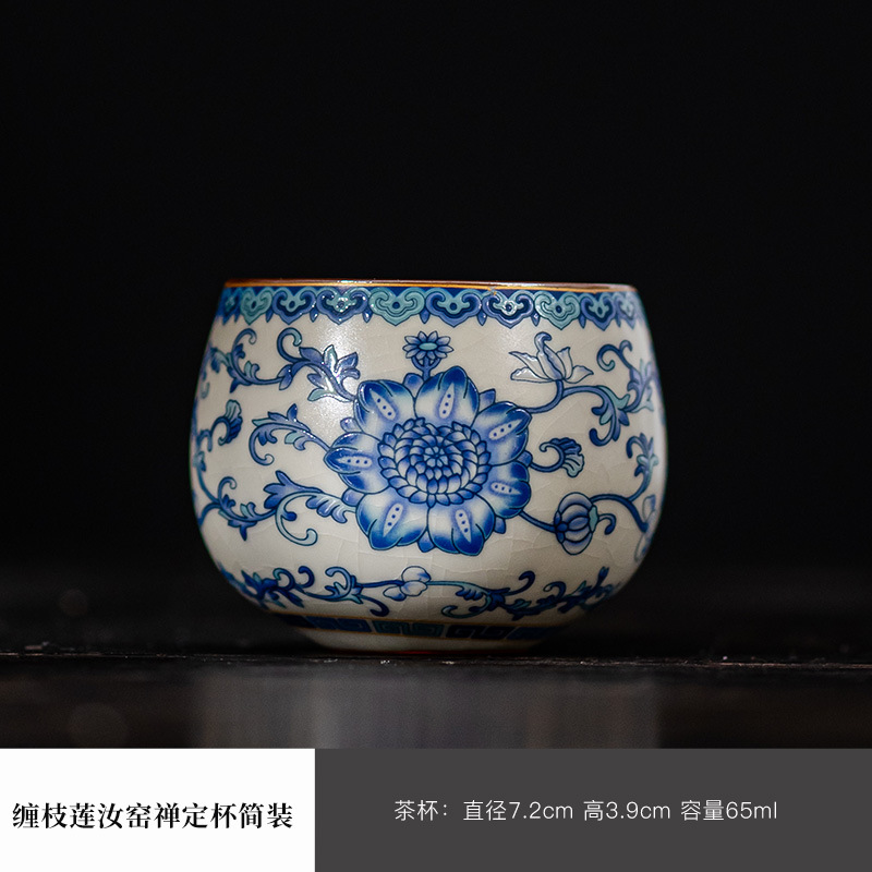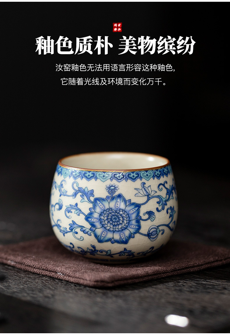 파란색과 흰색 Ru 가마 마스터 컵 스몰 사이즈 한 사람 차 컵 세라믹 차 시음 컵 개인 사용 단일 차 그릇