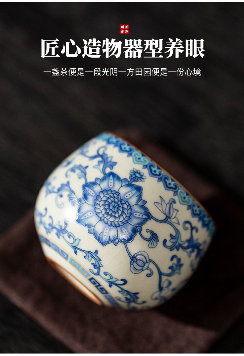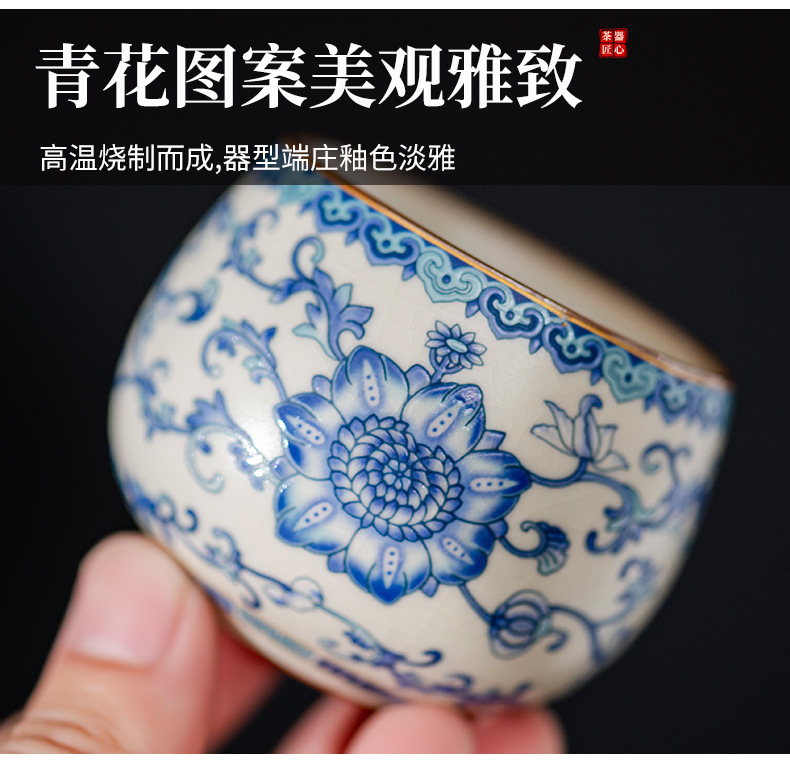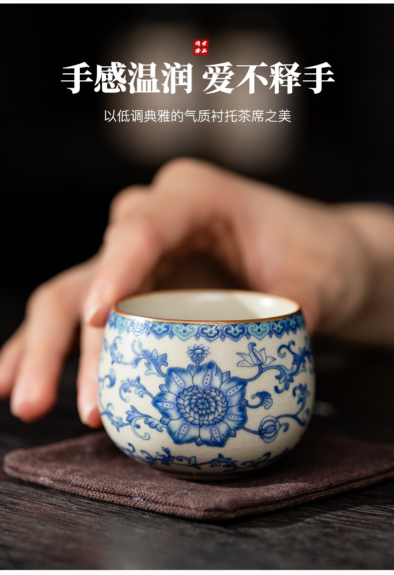 파란색과 흰색 Ru 가마 마스터 컵 스몰 사이즈 한 사람 차 컵 세라믹 차 시음 컵 개인 사용 단일 차 그릇스토어 가기