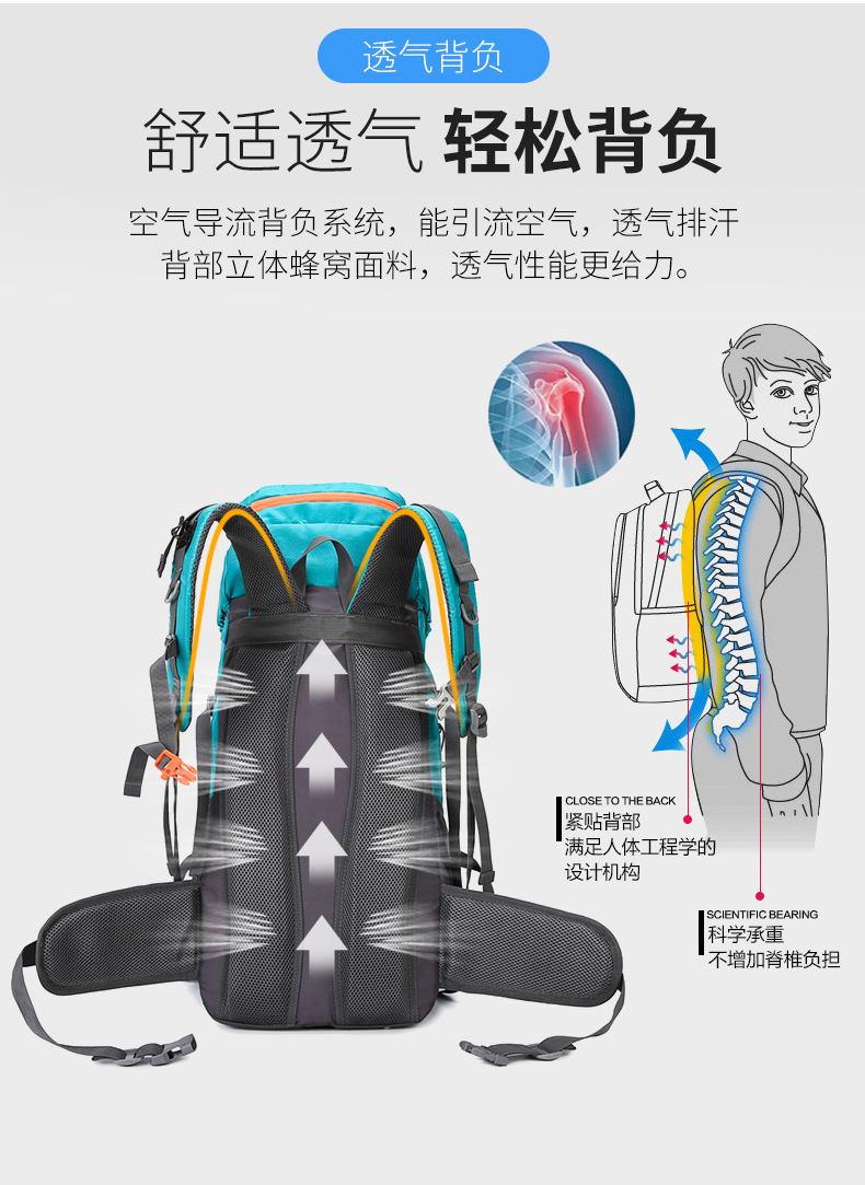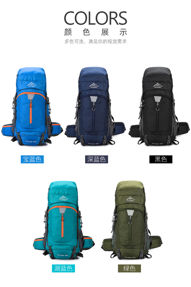 국경 60L 야외 대용량 등산 가방 다기능 경량 방수 배낭 캐주얼 캠핑 하이킹 가방