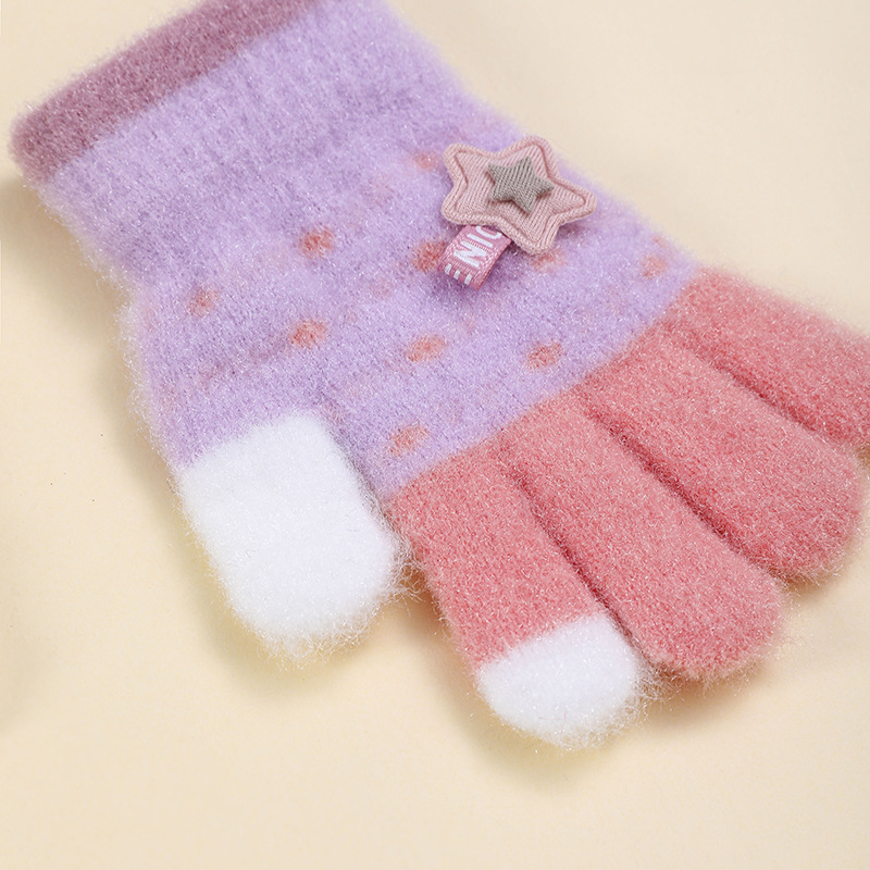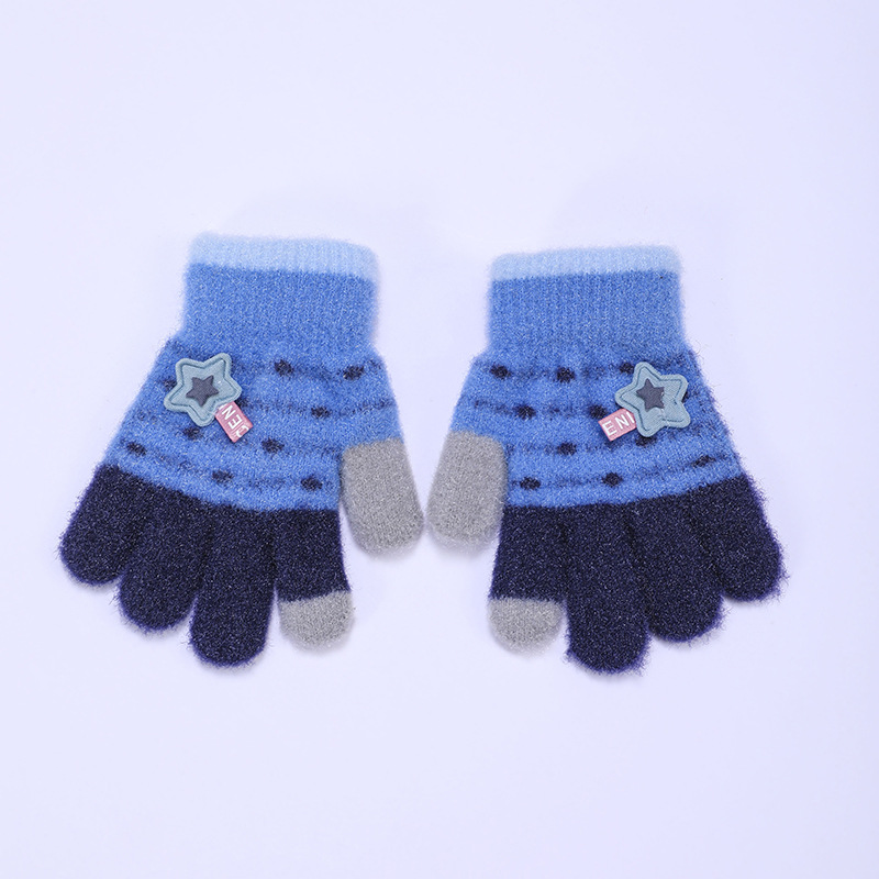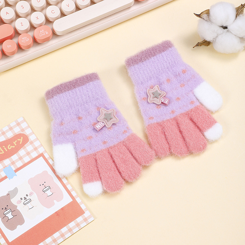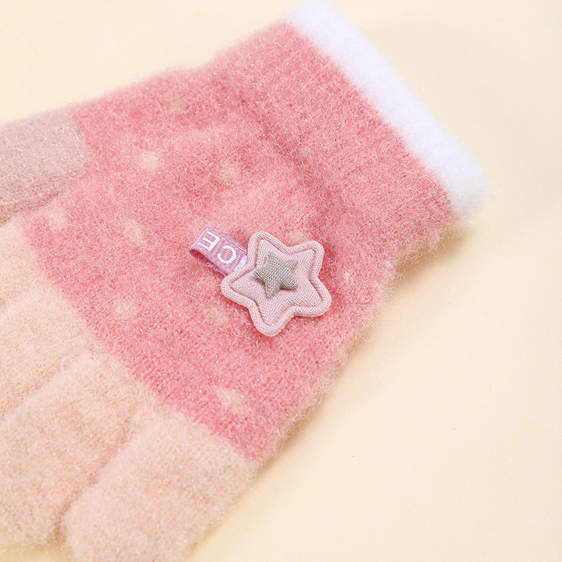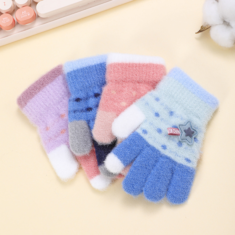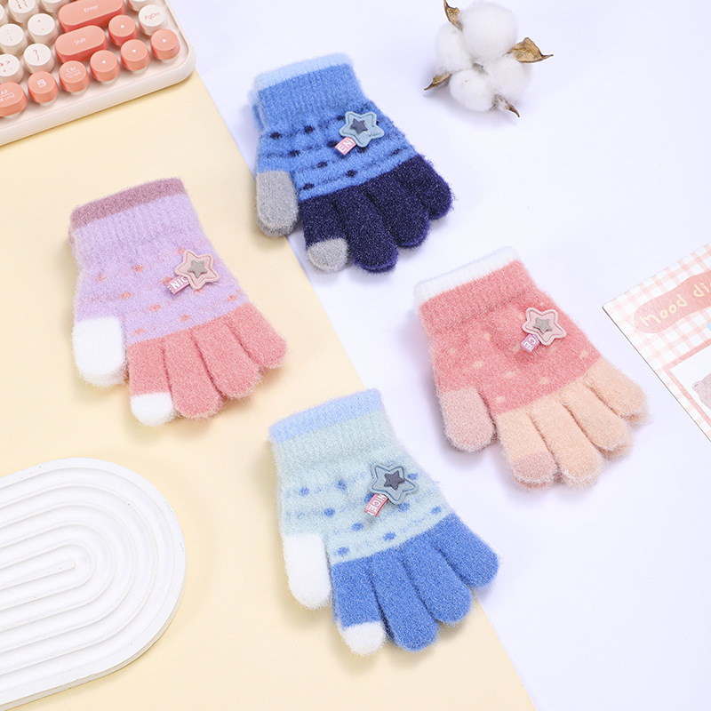 가을 겨울 어린이용 모직 장갑 남녀공용 보온 방한 아기 별 모양 다섯 손가락 장갑 귀여운 니트 장갑