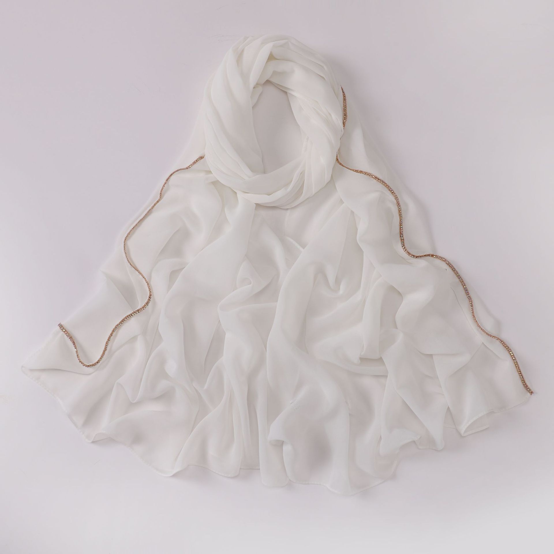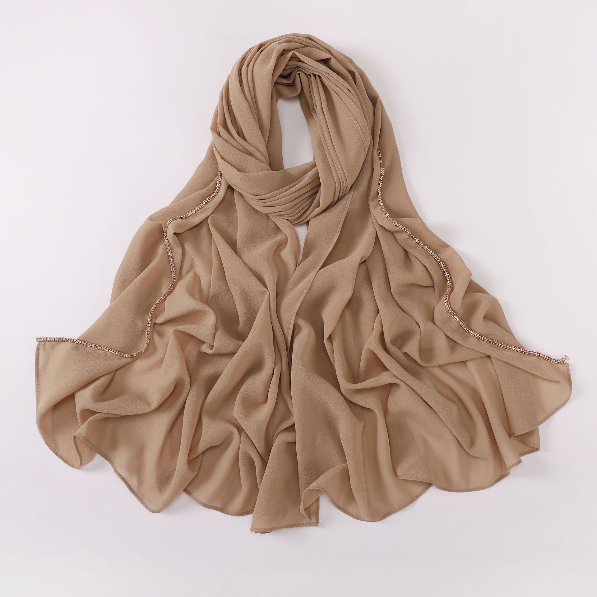 국경 간 라이브 고급 라인 스톤 구리 체인 세척 가능한 녹 방지 쉬폰 스카프 Hui 스카프 중동 아프리카 헤드 스카프