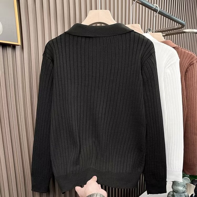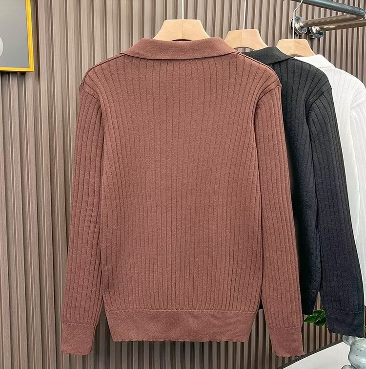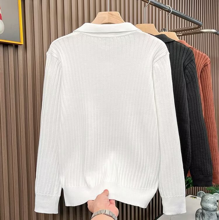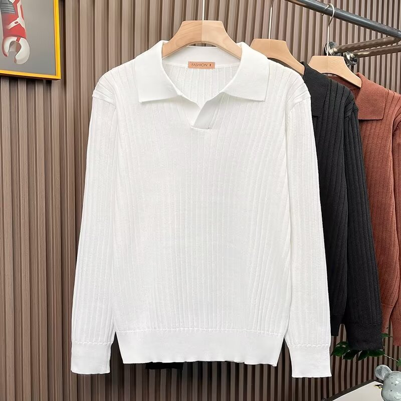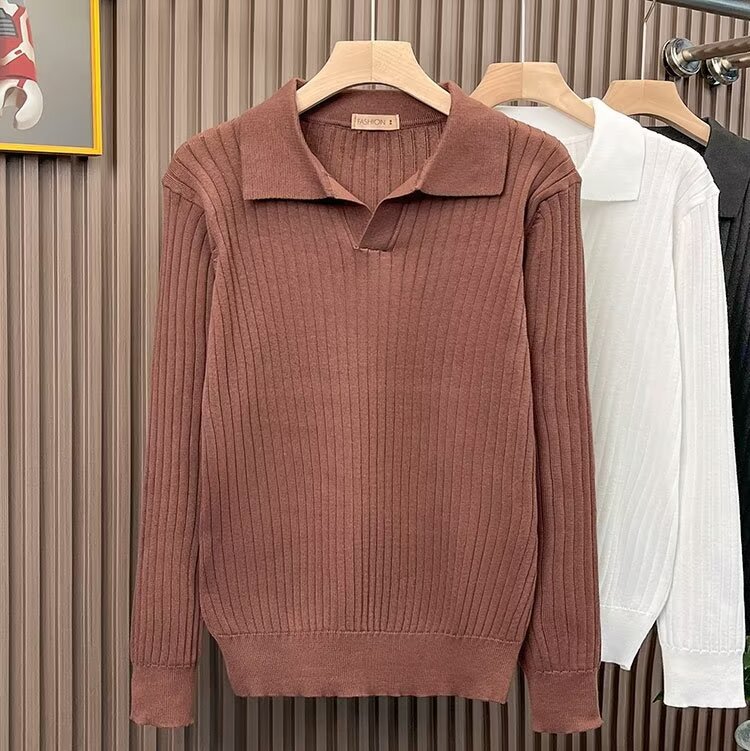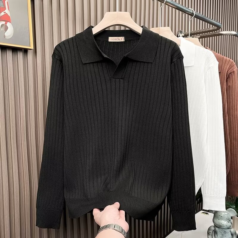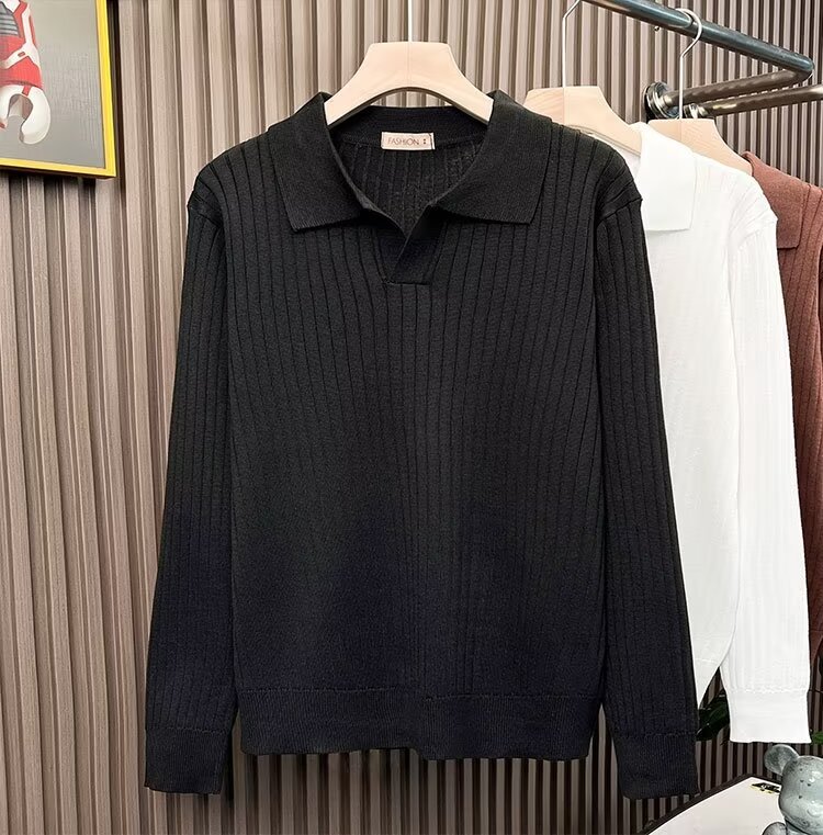 겨울 한국식 남성 스웨터 단색 실 탄성 옷깃 풀오버 POLO 남성용 긴 소매 티셔츠스토어 가기