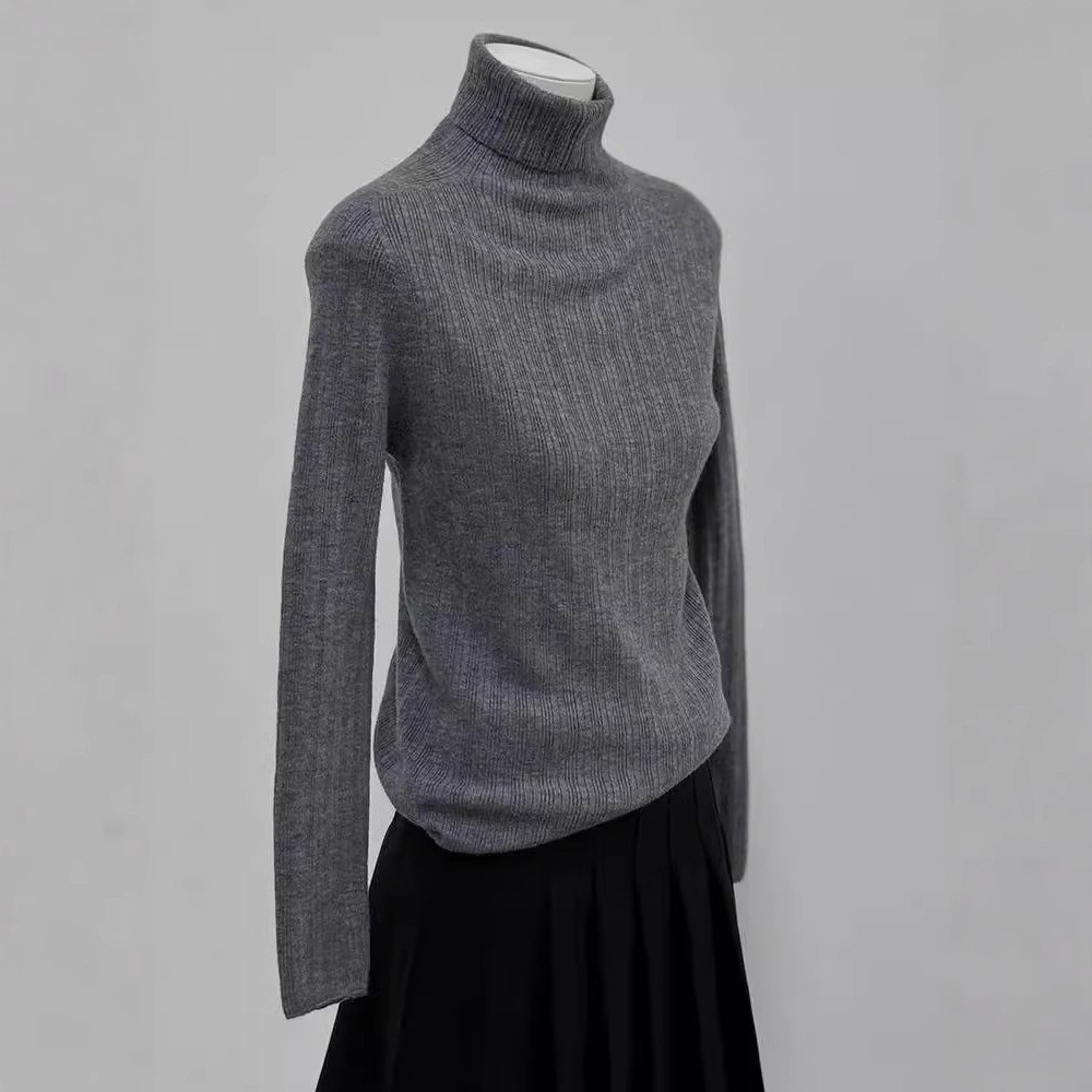 유럽 스타일 슬림핏 하이넥 다크 그레이 니트 여성 가을 겨울 신상 이너웨어 긴팔 루즈핏 울 스웨터