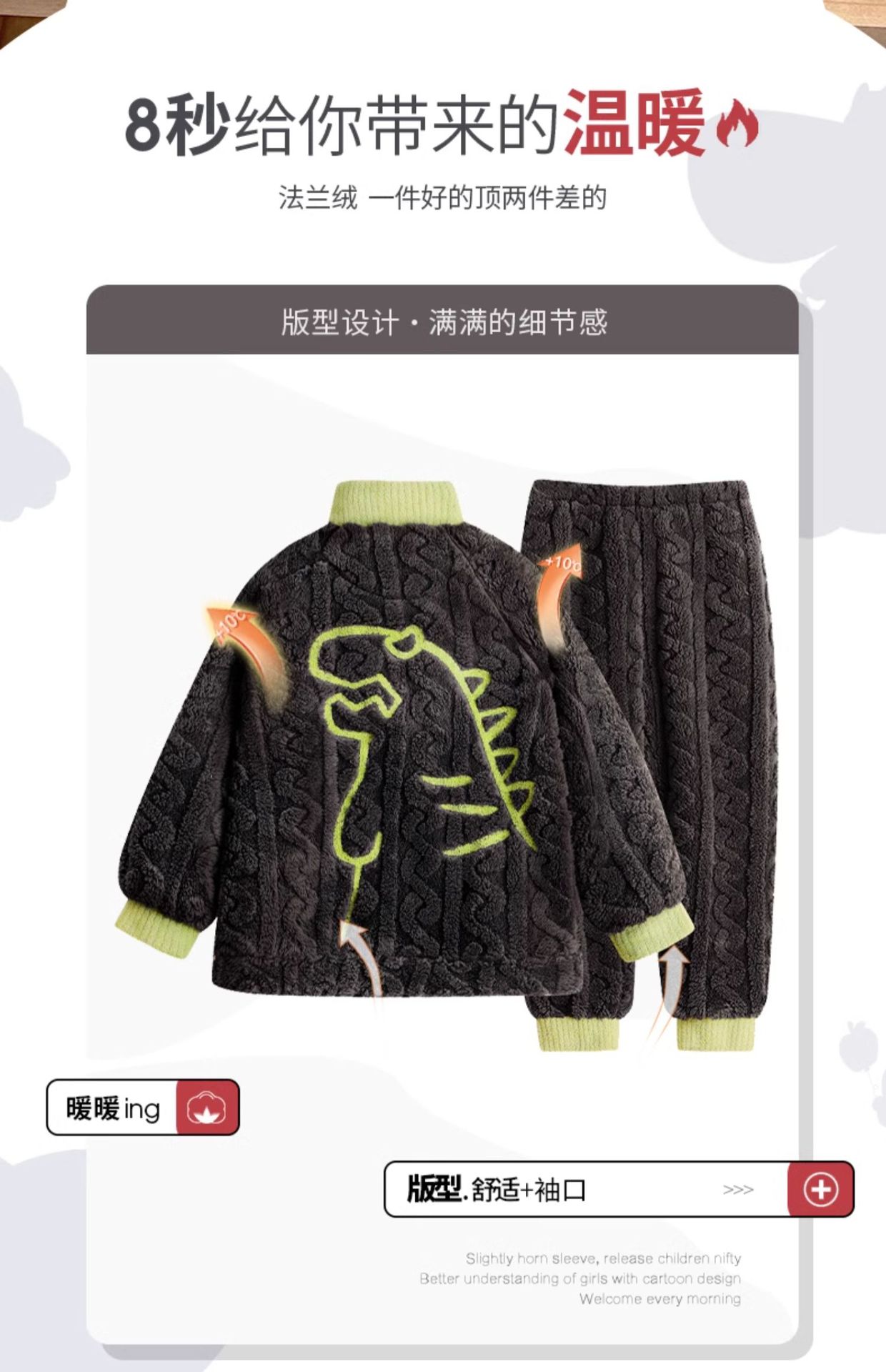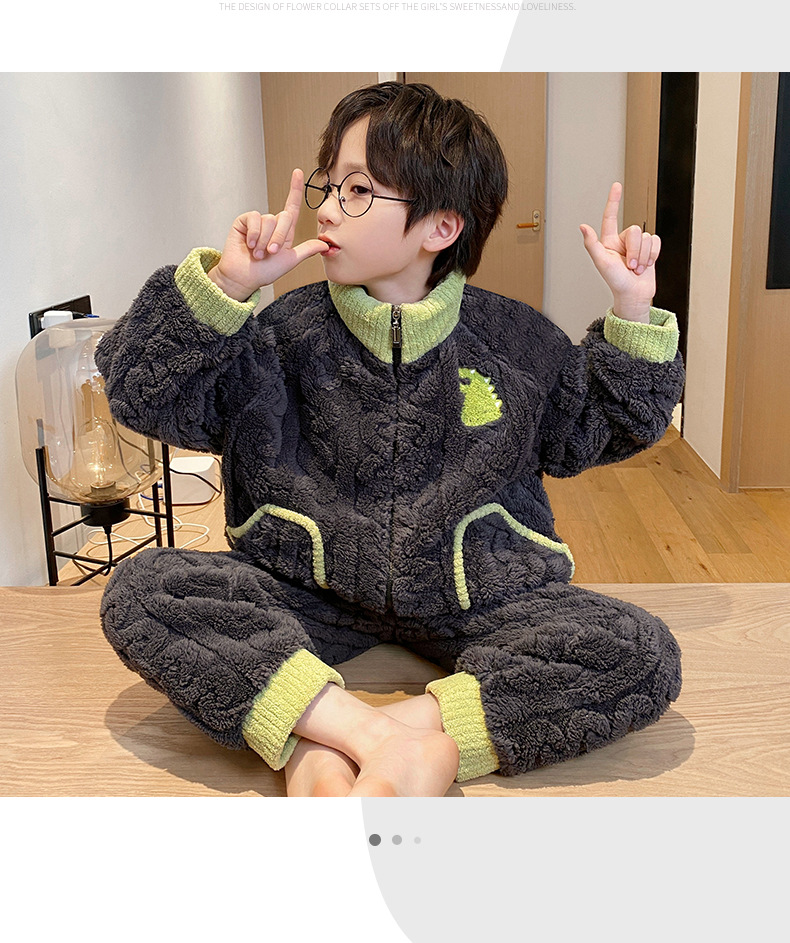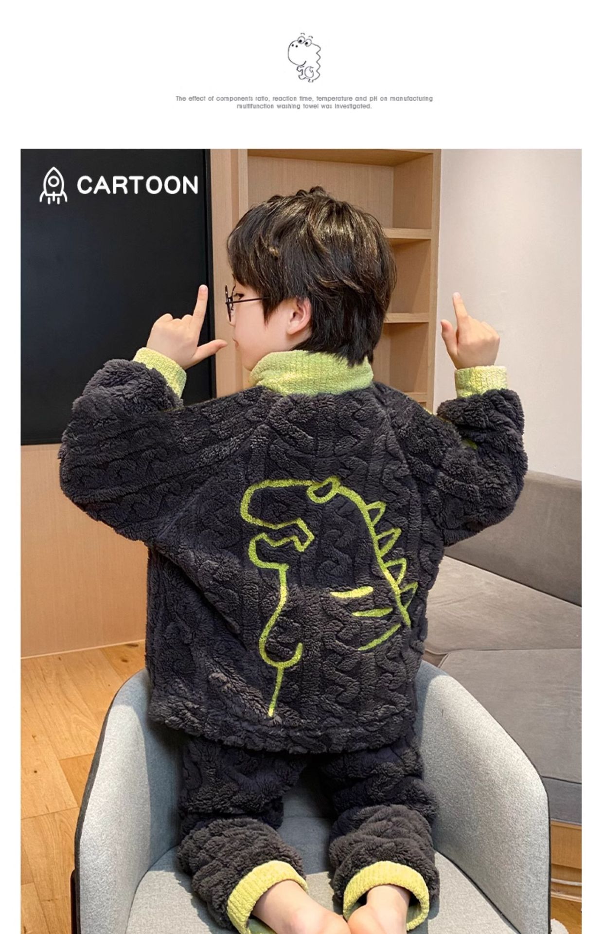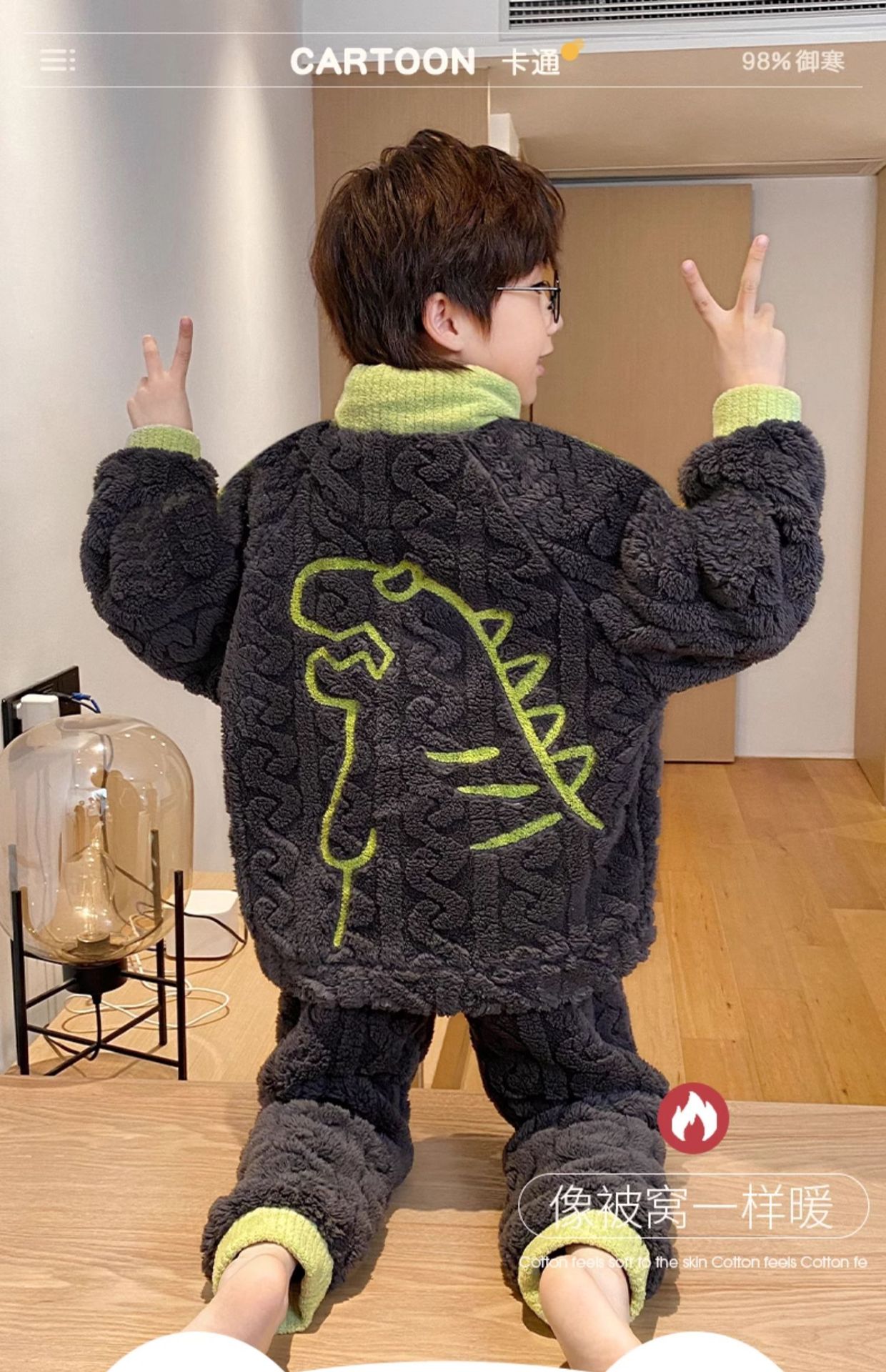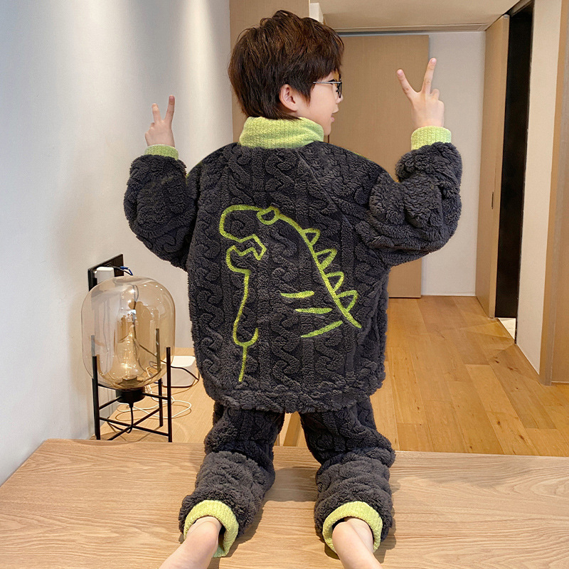 2024 년 새 소년 잠옷 가을과 겨울 산호 양털 두꺼운 어린이 공룡 큰 어린이 플란넬 홈 옷