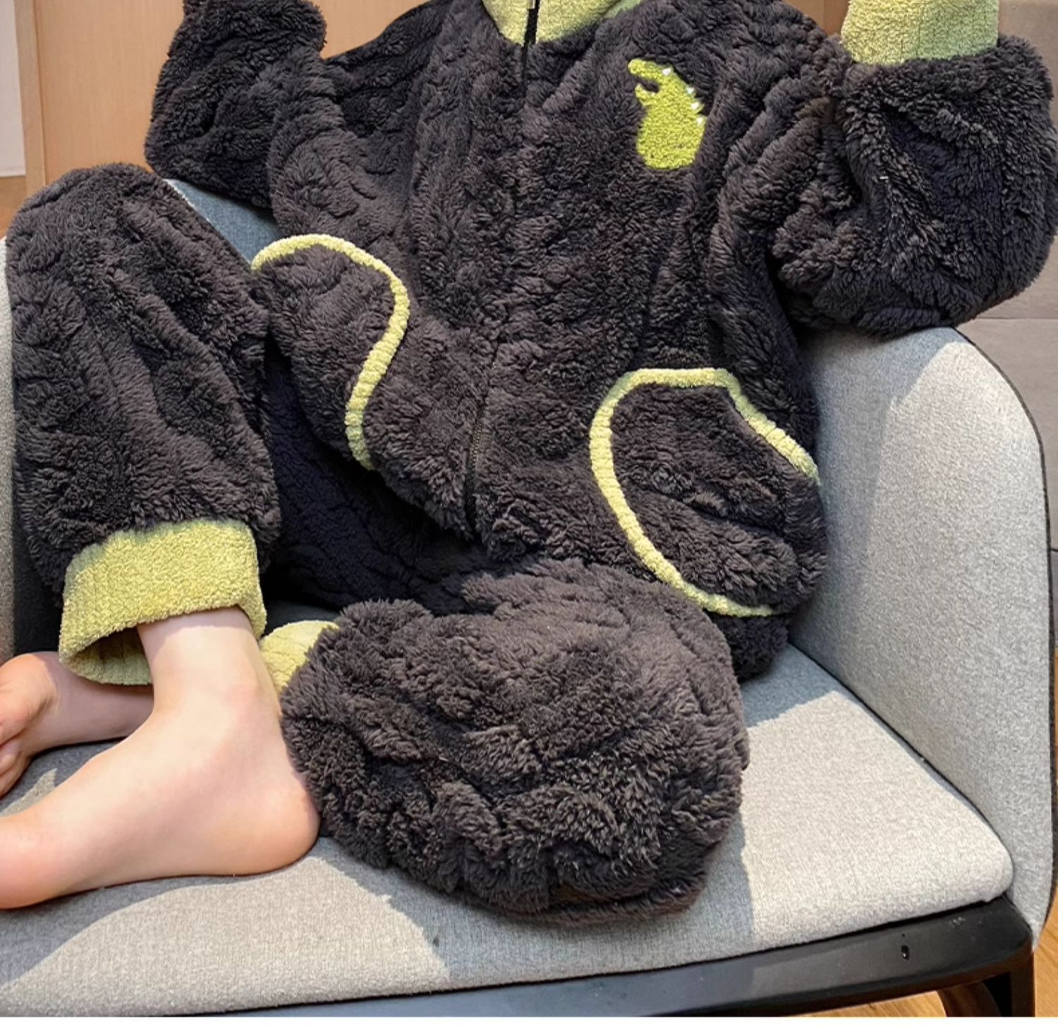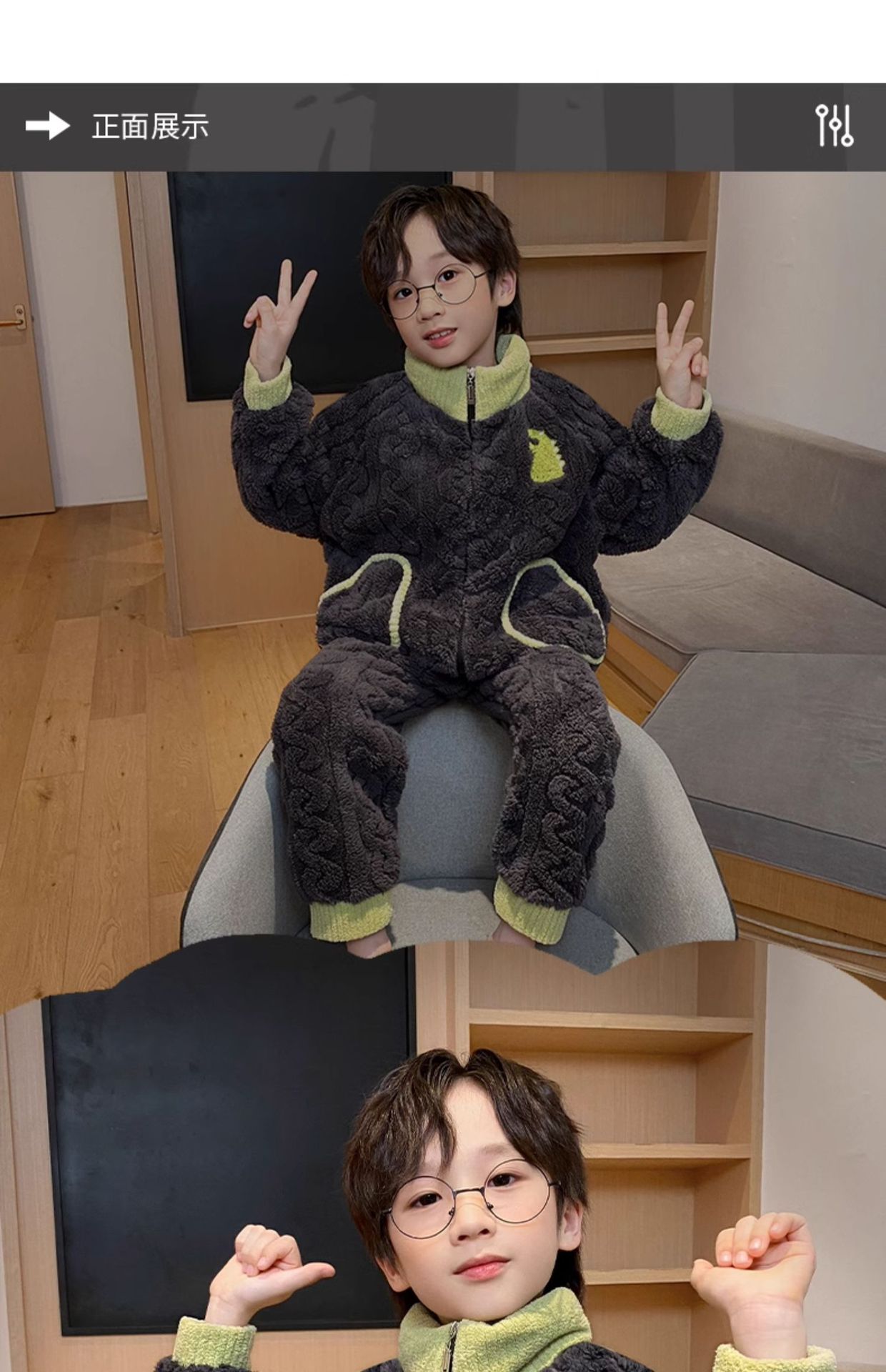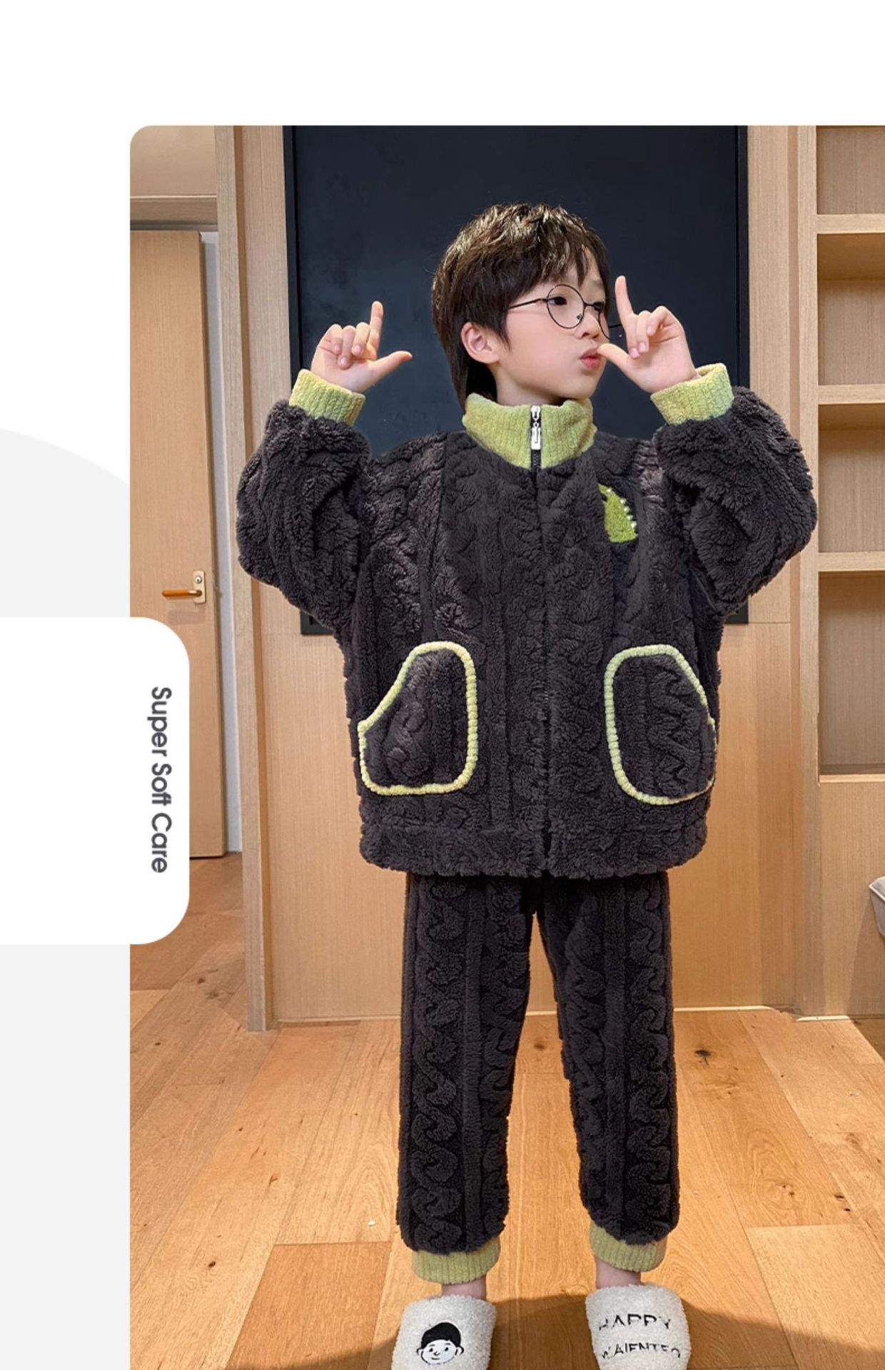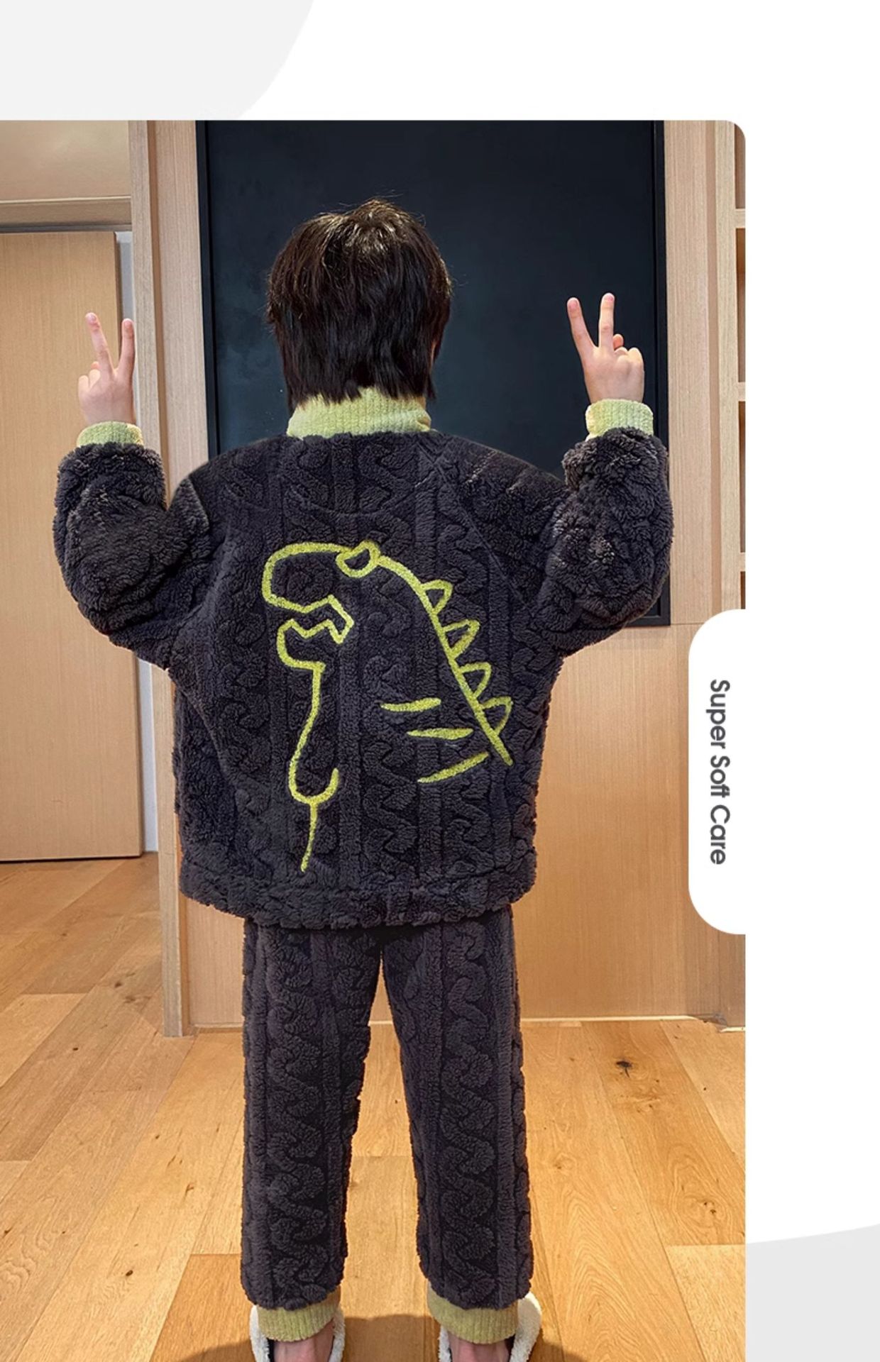 2024 년 새 소년 잠옷 가을과 겨울 산호 양털 두꺼운 어린이 공룡 큰 어린이 플란넬 홈 옷