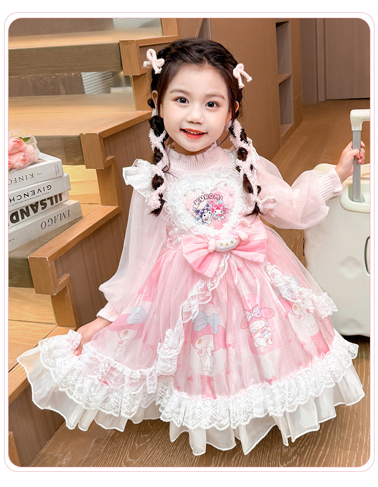 소녀의 서양식 봄과 가을 레이스 메를로 리타 폰테 원피스 공주 원피스 2024 아이 쿨로 미 원피스스토어 가기