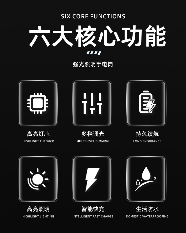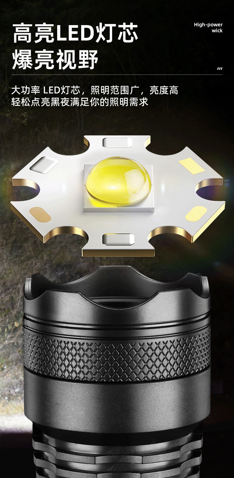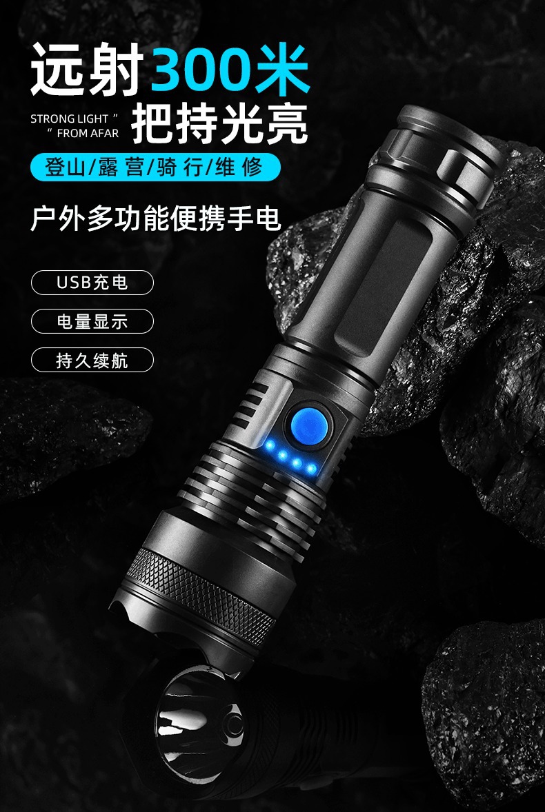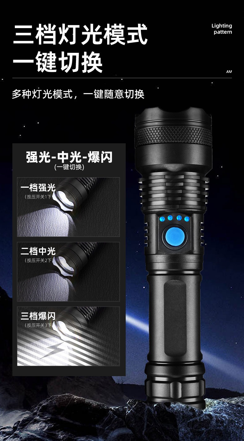 국경 간 ABS 강한 빛 손전등 LED 홈 휴대용 조명 손전등 야외 전기 디스플레이 야간 낚시 다기능 손전등