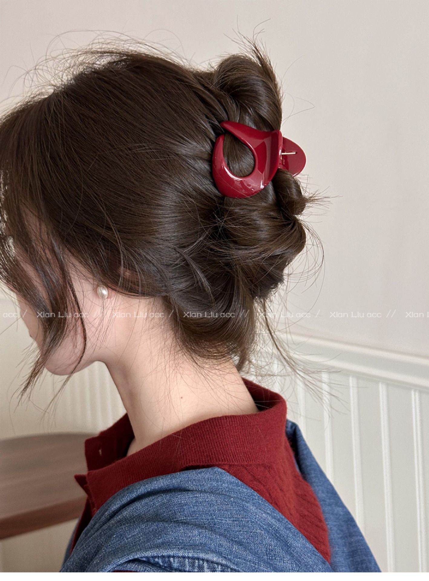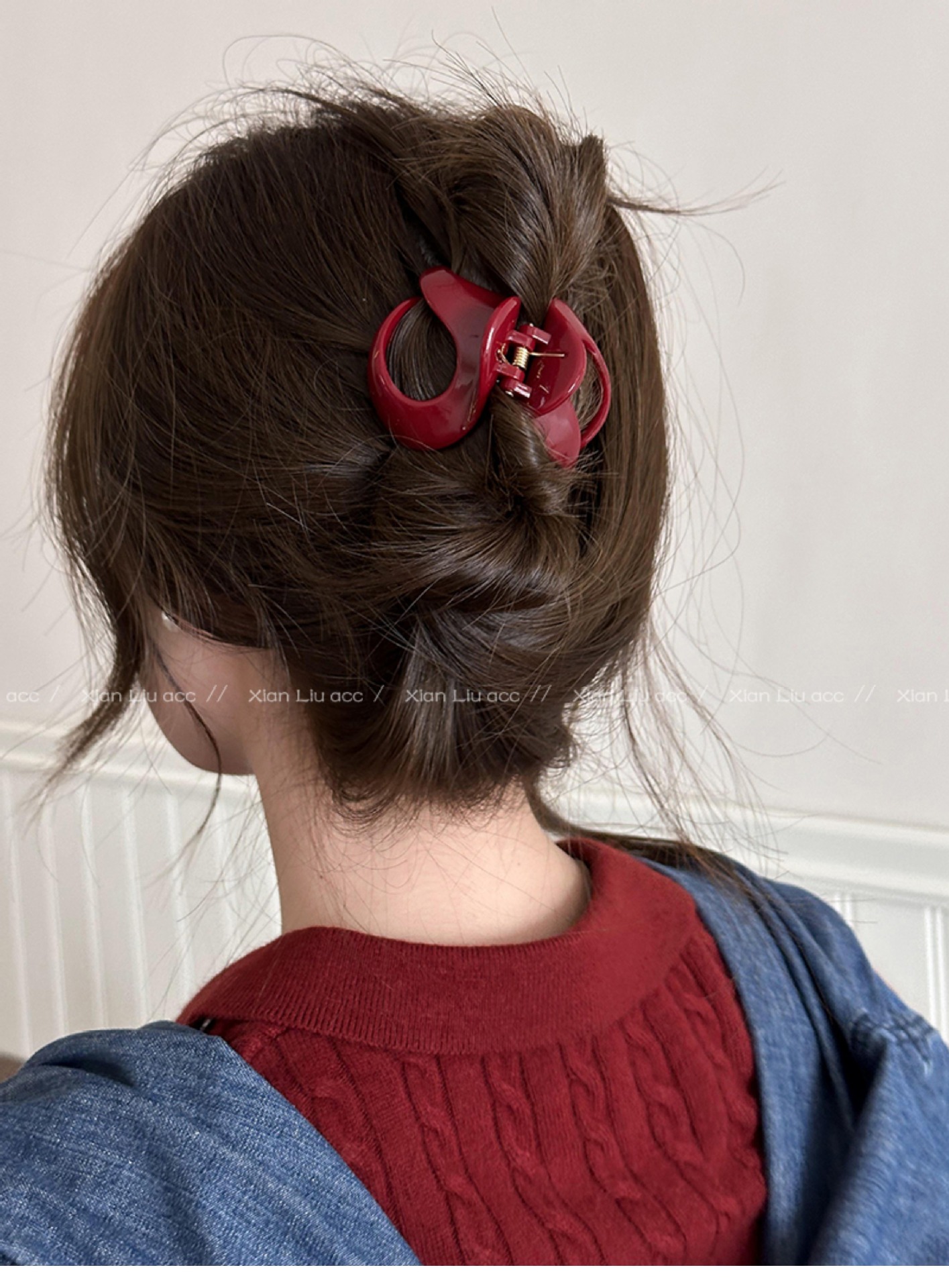 안코라 붉은 가을과 겨울 중간 그랩 클립 여성의 높은 감각 헤어핀 뒤 머리 반 넥타이 상어 클립 우아한 헤어 액세서리스토어 가기
