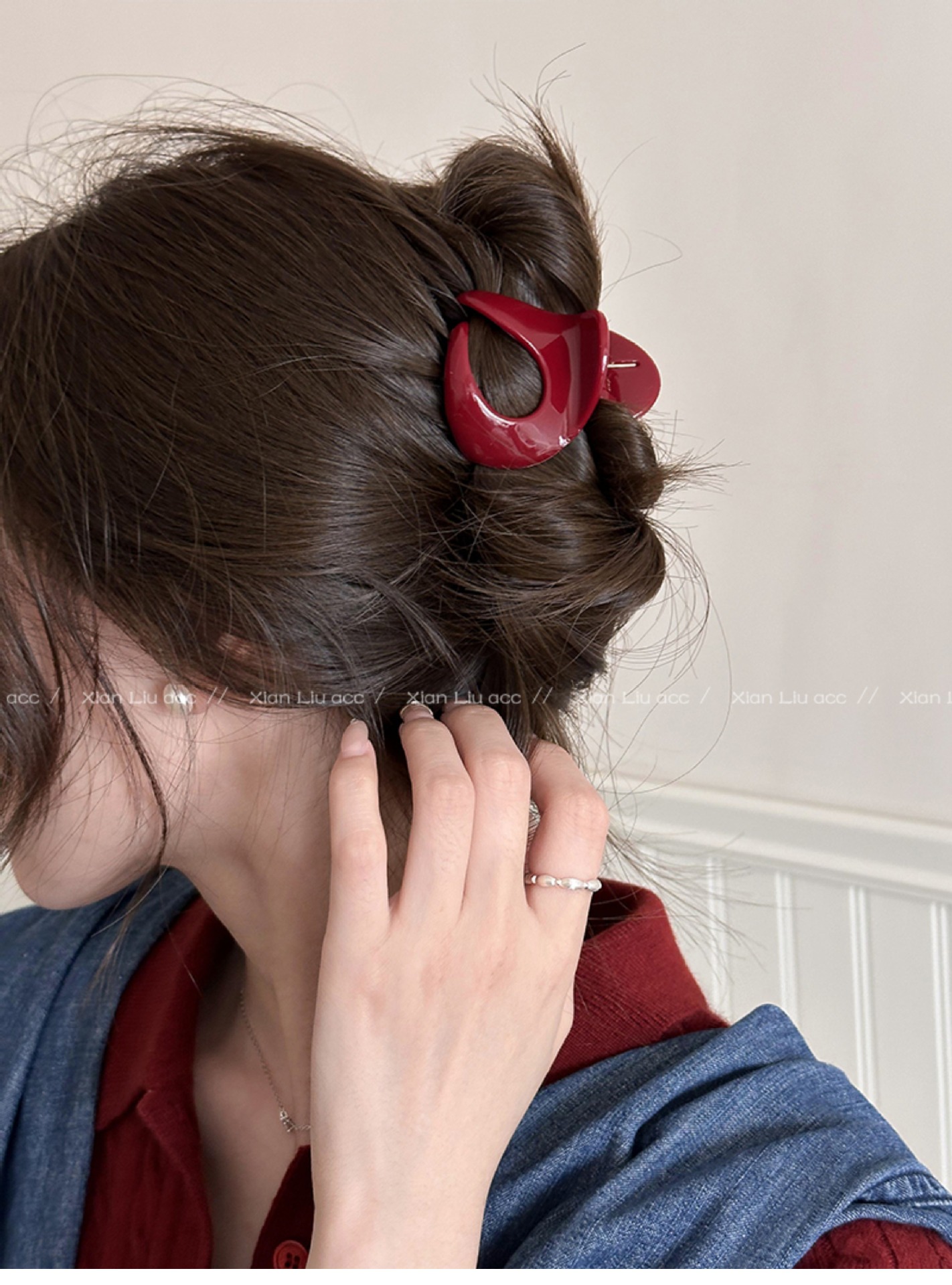 안코라 붉은 가을과 겨울 중간 그랩 클립 여성의 높은 감각 헤어핀 뒤 머리 반 넥타이 상어 클립 우아한 헤어 액세서리