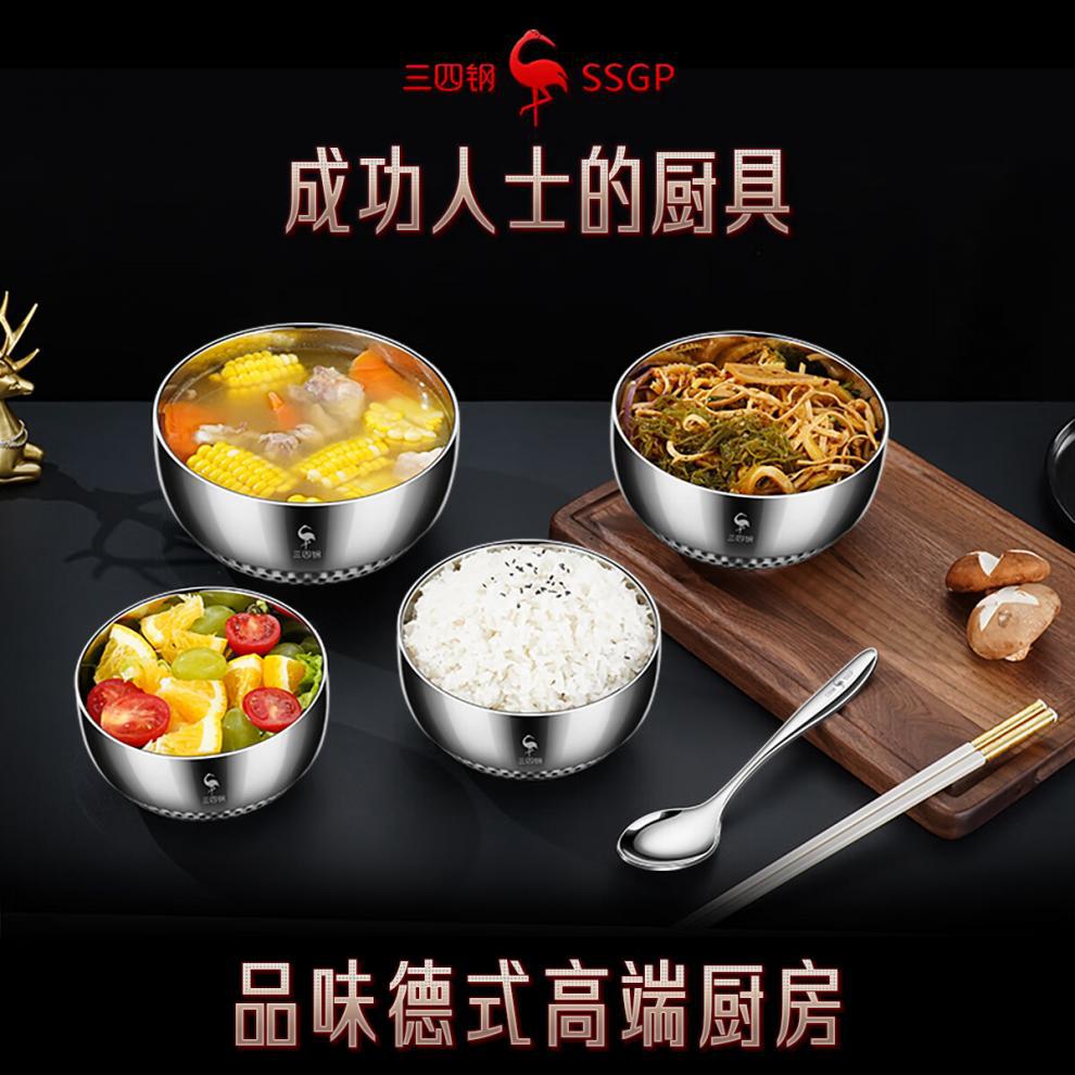 SSGP304 스테인레스 스틸 더블 레이어 보울 다림질 방지 보울 어린이 단열 그릇 가구 매점 국수 그릇 수프 그릇 기숙사 쌀 그릇스토어 가기