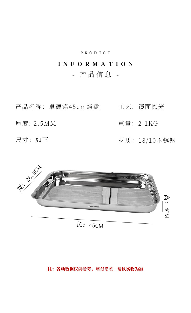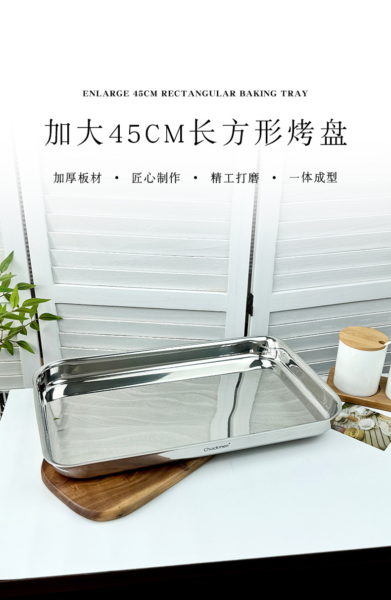 Chockmen Zhuo Deming 18/10 스테인레스 스틸 직사각형 베이커웨어 유도 쿠커 사용 가능 45cm 베이커웨어 트레이